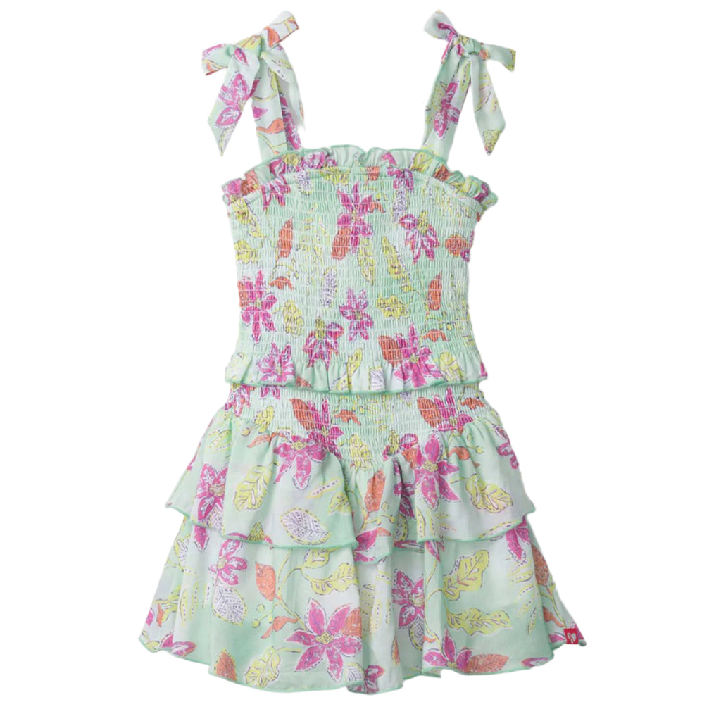 Green tutu skirt with gingerbread men, snowflakes, and red bows on a white background