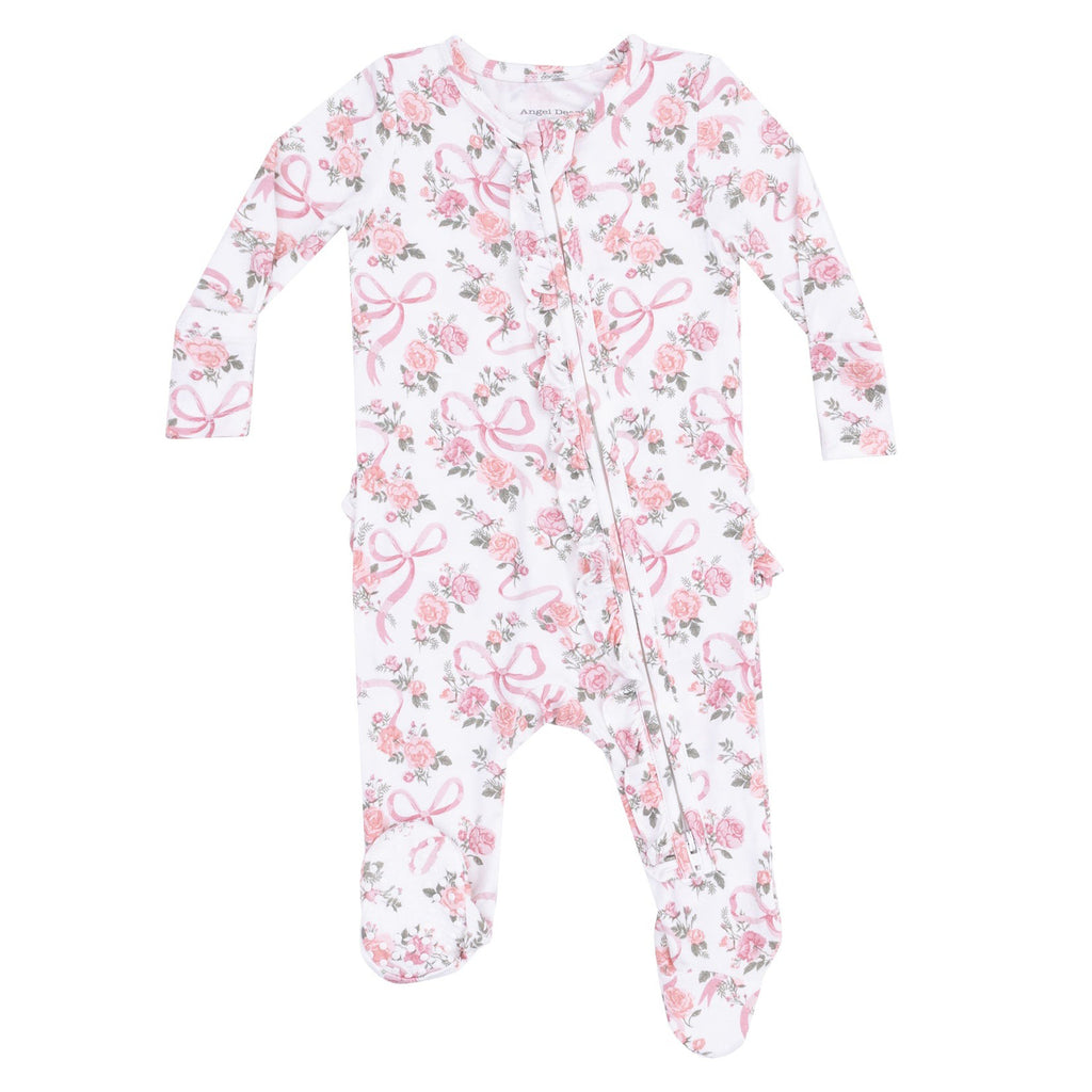 Candy Cane Bows - 2 Way Zipper Ruffle Back Footie