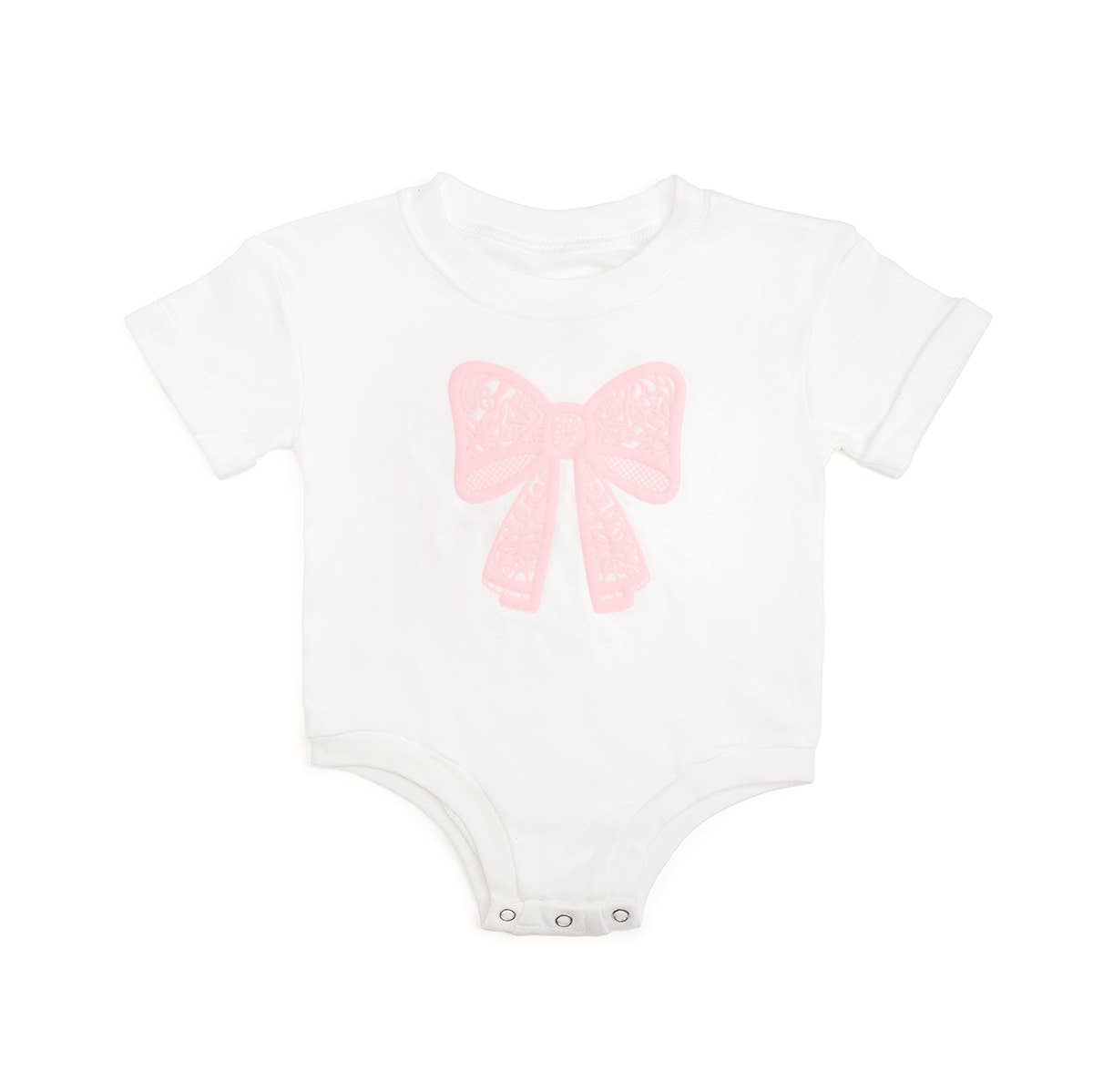 This adorable romper is all tied up in cuteness with a big pink bow that makes every snuggle and wiggle even sweeter.