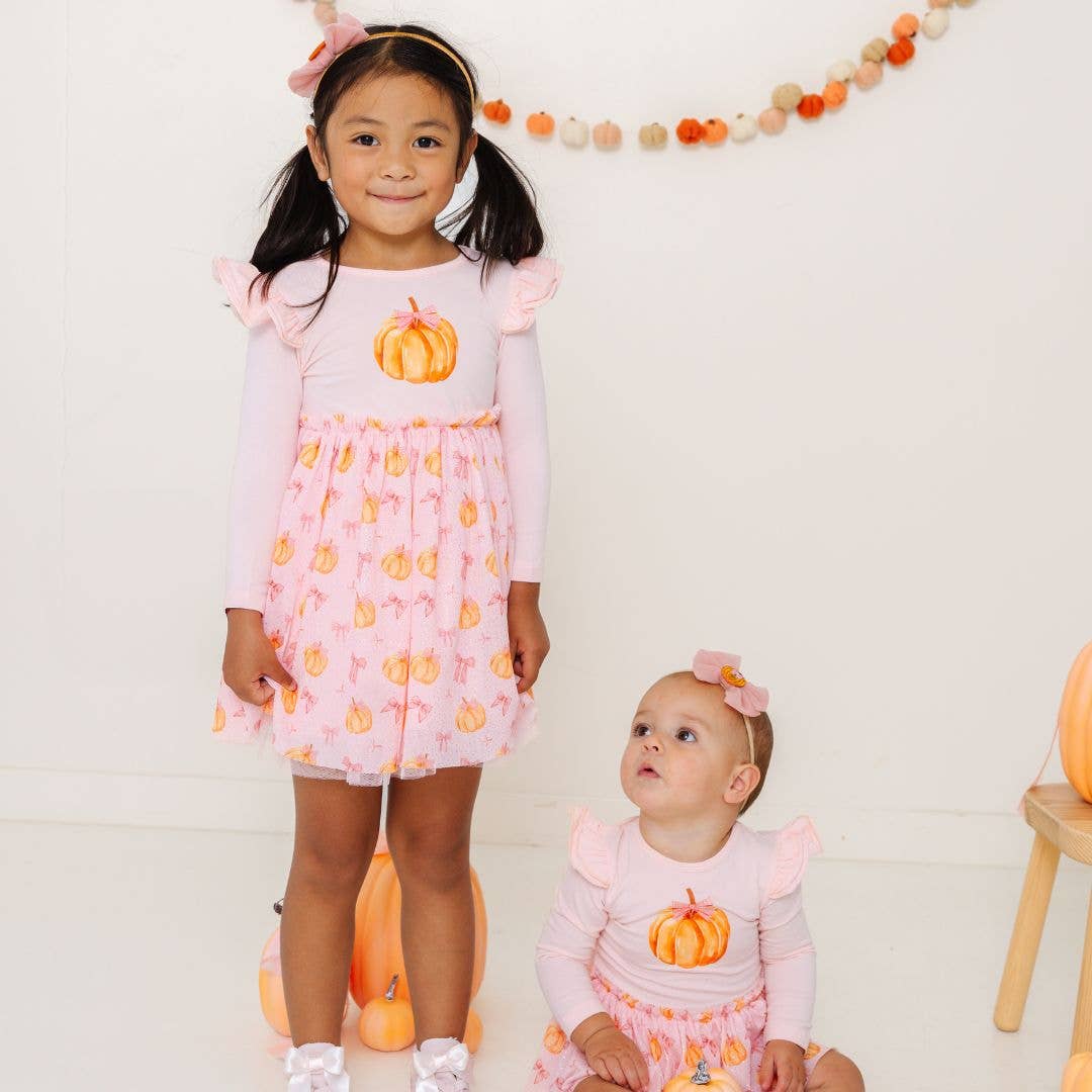 - Pink tulle bow with a copper glitter pumpkin motif