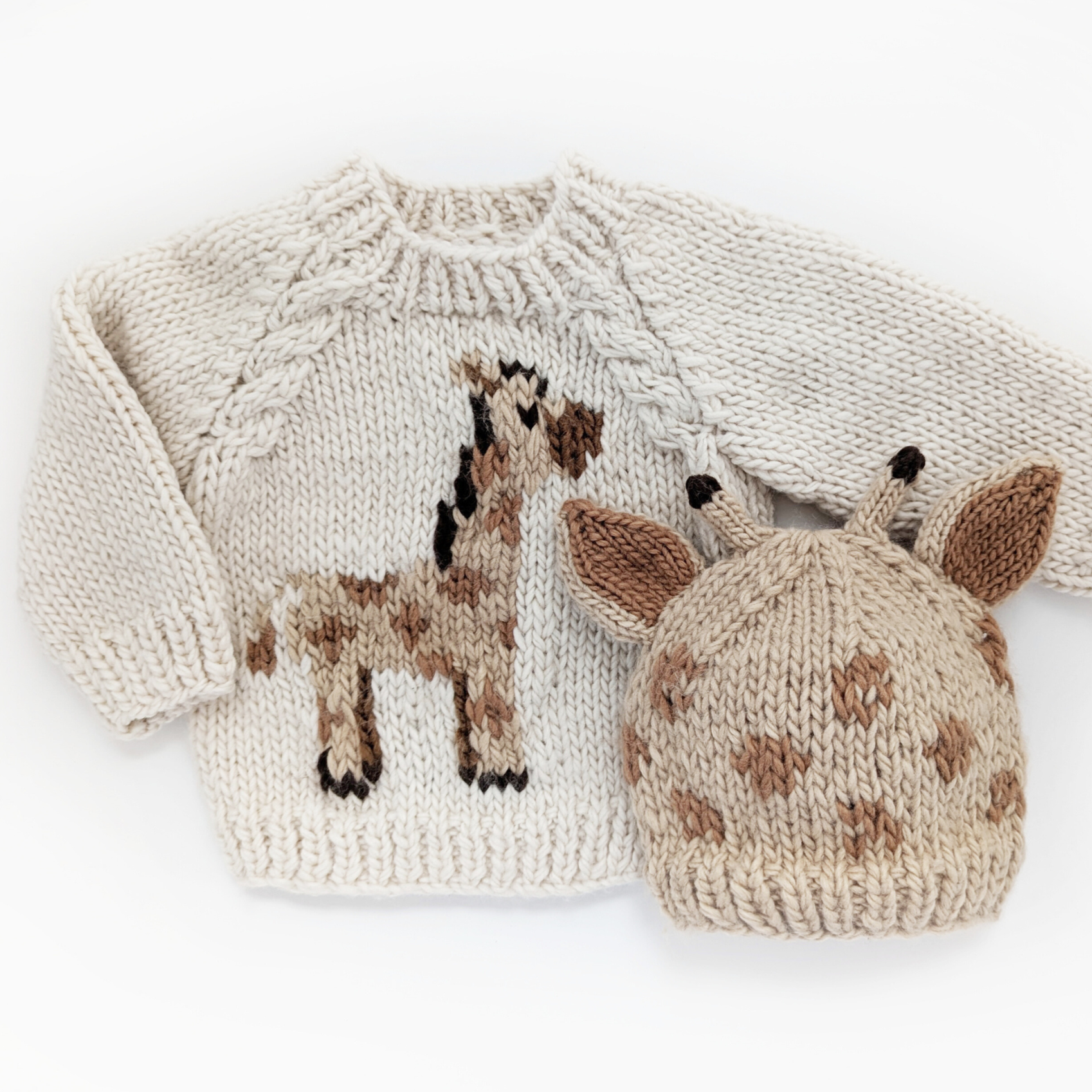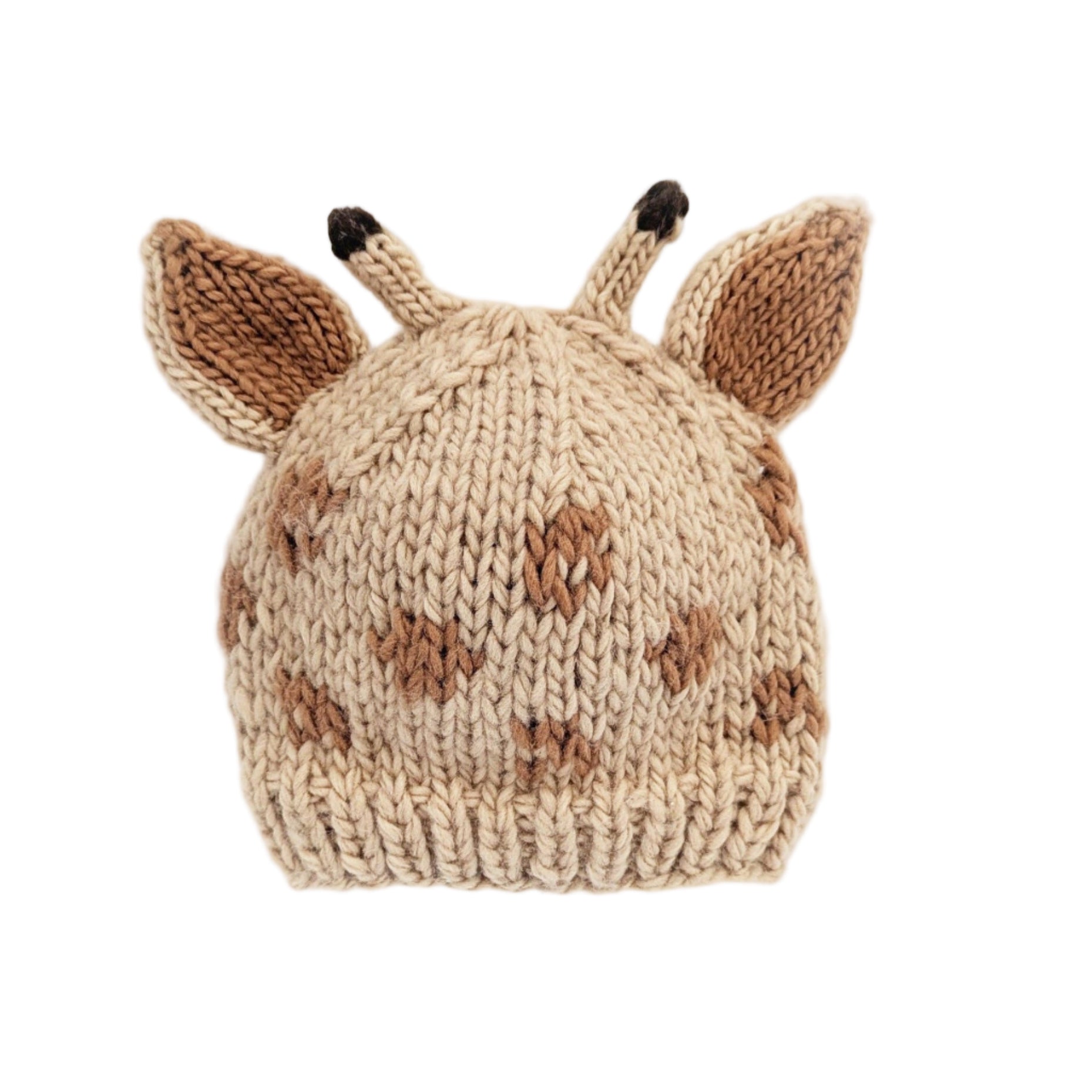 This Giraffe Beanie Hat will have your little one looking adorable! Hand-crafted with earth toned, chunky yarn and featuring cute ears, antennae, and spots. And for those looking to complete the look, don't miss out on our coordinating sweater! Each hat is partially knit from recycled, sustainable Polyester yarn made from plastic bottles.