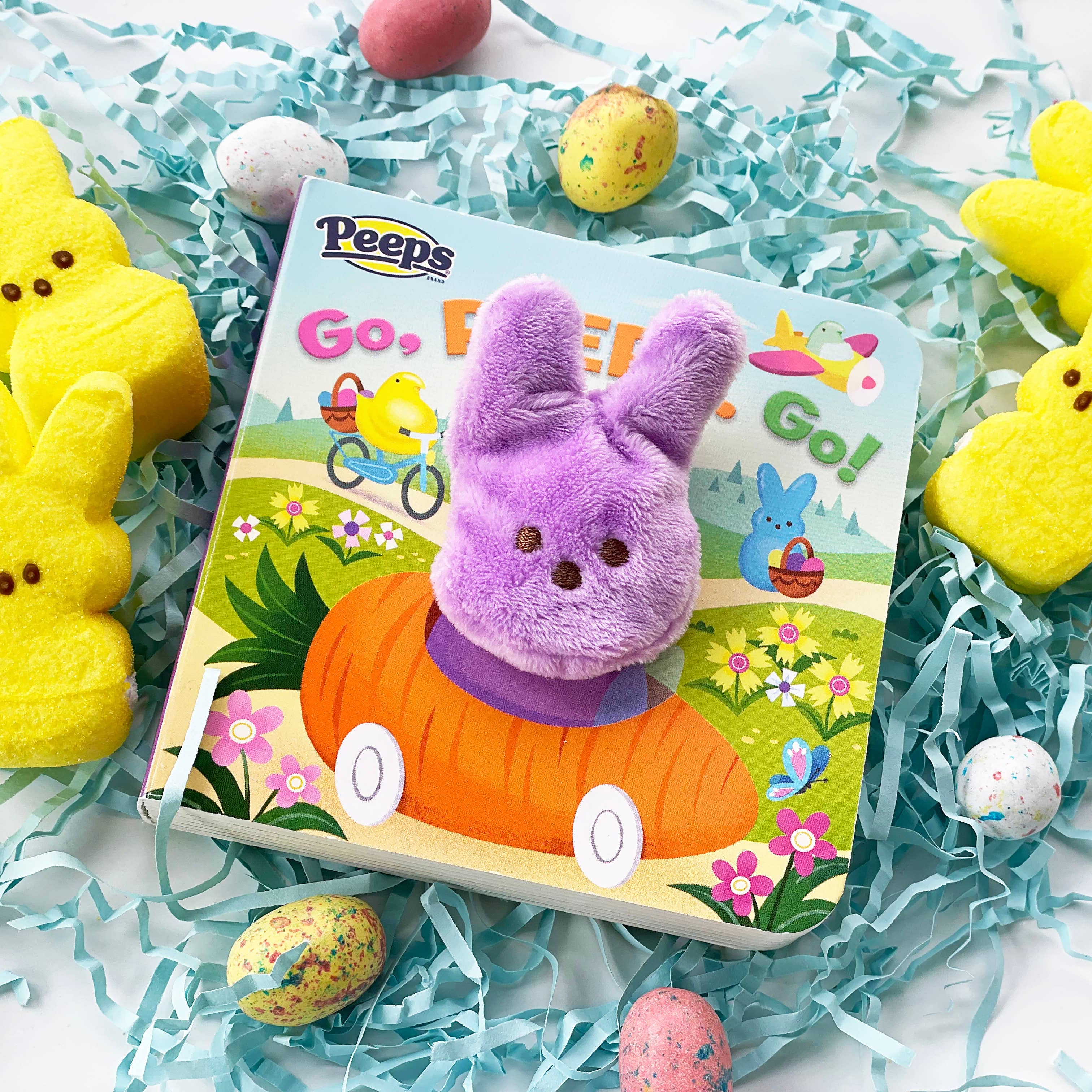 It is Easter and the Peeps are coming to town! Wiggle the adorable Bunny Peep finger puppet and giggle along with all the Peeps in cars, planes, boats, and trains! This sweet rhyming book features a soft plush finger puppet toy built into the story, allowing for both sensory and language development. Perfect for Easter baskets, baby's first Easter, and toddlers who are super egg-cited for the Easter Bunny! Officially licensed Peeps product. Looking for good Easter books or Easter gifts for kids? Add to your family's library with more board books from Cottage Door Press! Love puppet books for babies and toddlers? Collect the entire Finger Puppet Board Book series for all types of occasions and fun learning!