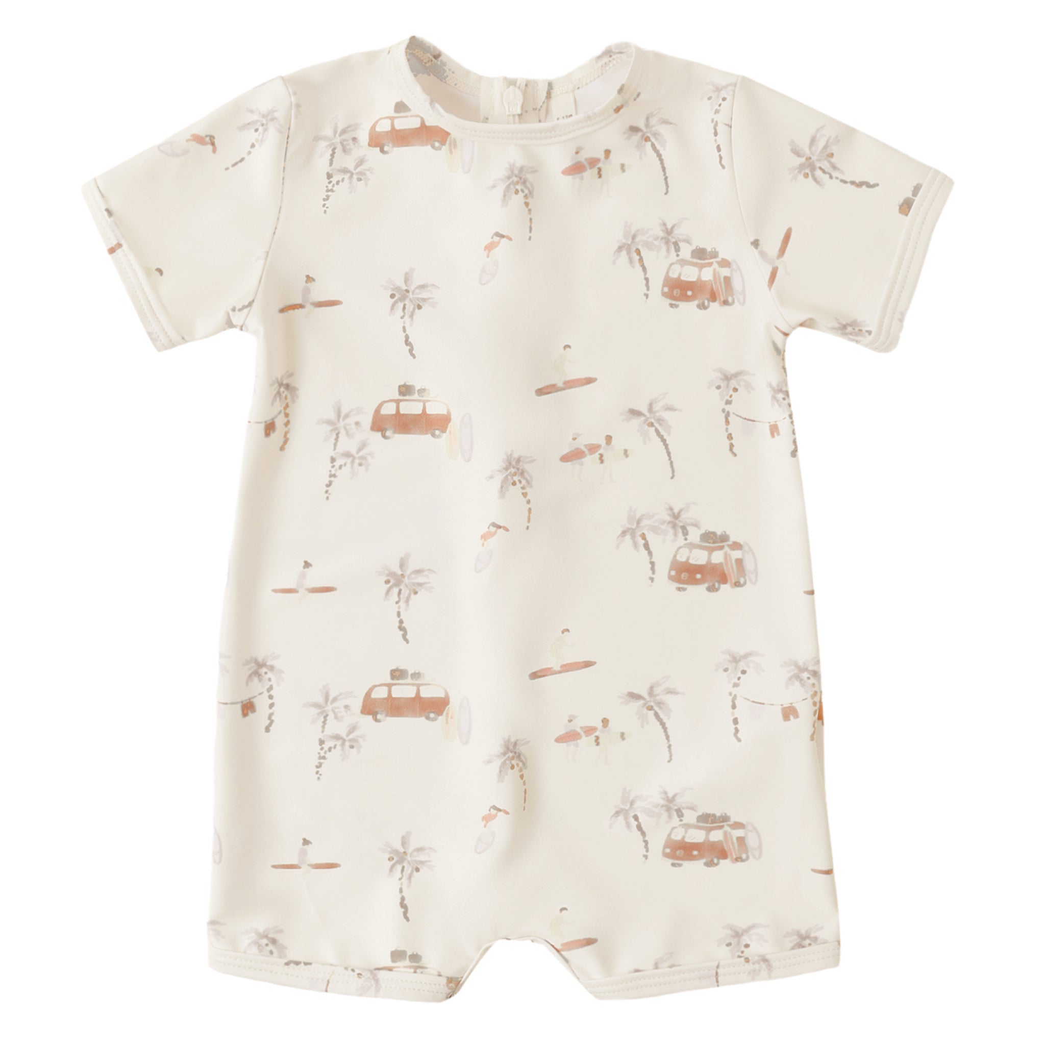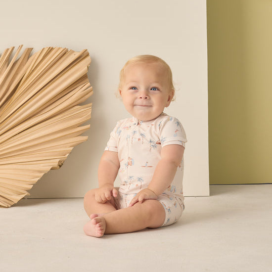 Our Shorty One-Piece is an adorable way to keep your little one protected from the sun in style. Zipper closure at the back and snaps at the leg openings for easy changing.