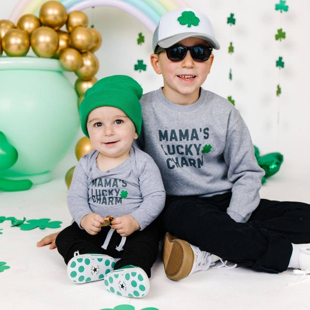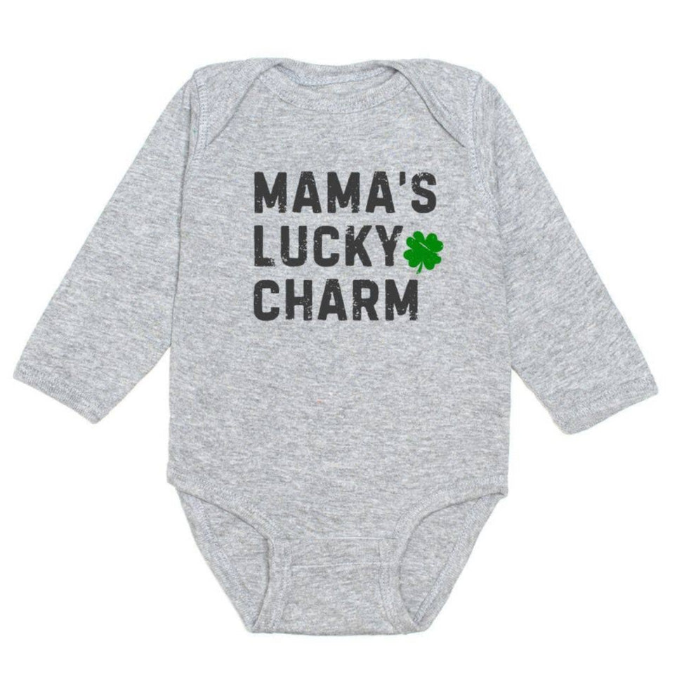 The Mama's Lucky Charm St. Patrick's Day Long Sleeve Bodysuit is a fun and festive bodysuit for babies celebrating St. Patrick's Day! Features: