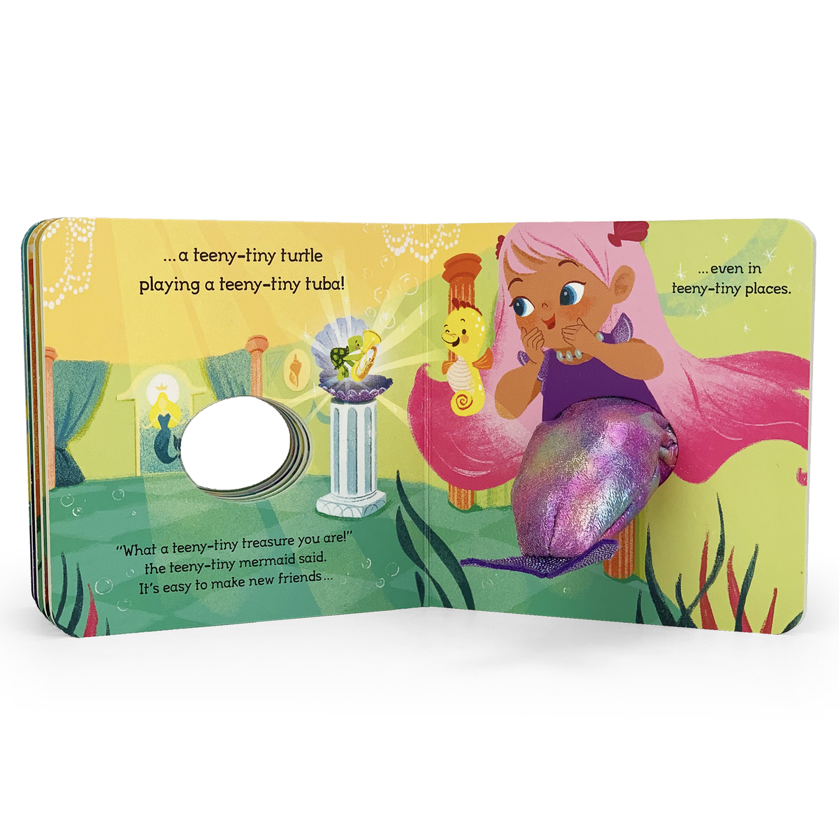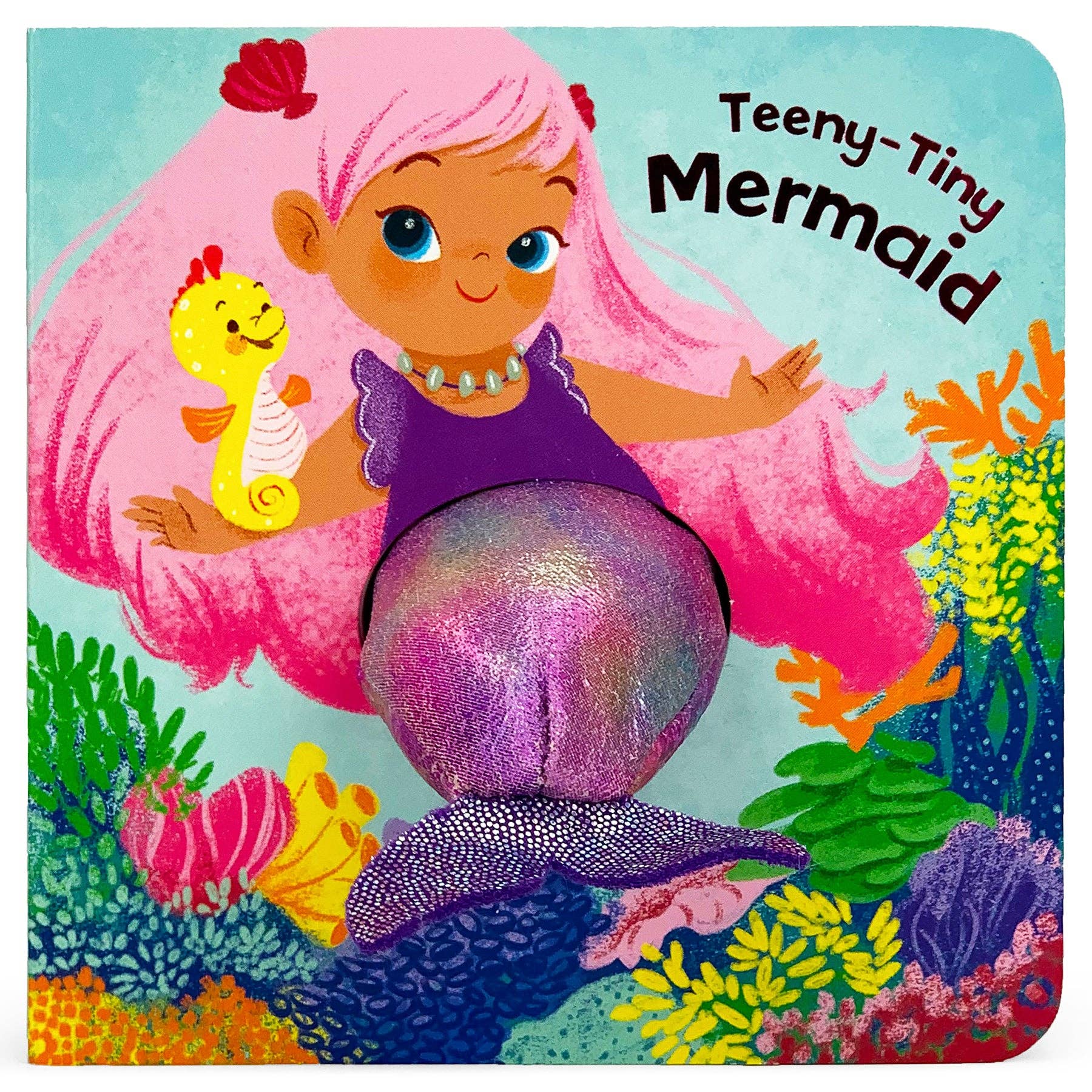 Explore the wondrous teeny-tiny underwater world of a sweet, teeny-tiny mermaid who lives in a teeny-tiny castle with her teeny-tiny friend! Life in the teeny-tiny sea is full of big adventures filled with teeny-tiny beautiful treasures to be found! This interactive aquatic adventure features a bright, iridescent mermaid tail puppet toy built into the book perfect for flipping through every page while encouraging interactive play, hand-eye coordination, and sensory and language development. Babies and toddlers learn best when they are playing, especially when their grown-ups are in on the fun! Collect the entire Finger Puppet Board Book series! The adorable built-in mermaid finger puppet encourages interactive play and helps develop fine motor skills. The funny rhyming story entertains while teaching language patterns to babies and toddlers in their first years. Practice hand-eye coordination.