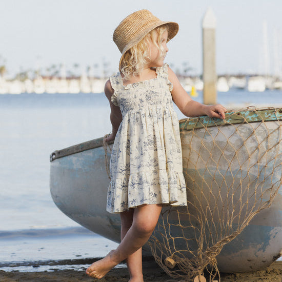 With gathered elastic straps, smocked bodice and a gathered ruffle bottom tier, our Sutton Dress is the perfect spring time look.