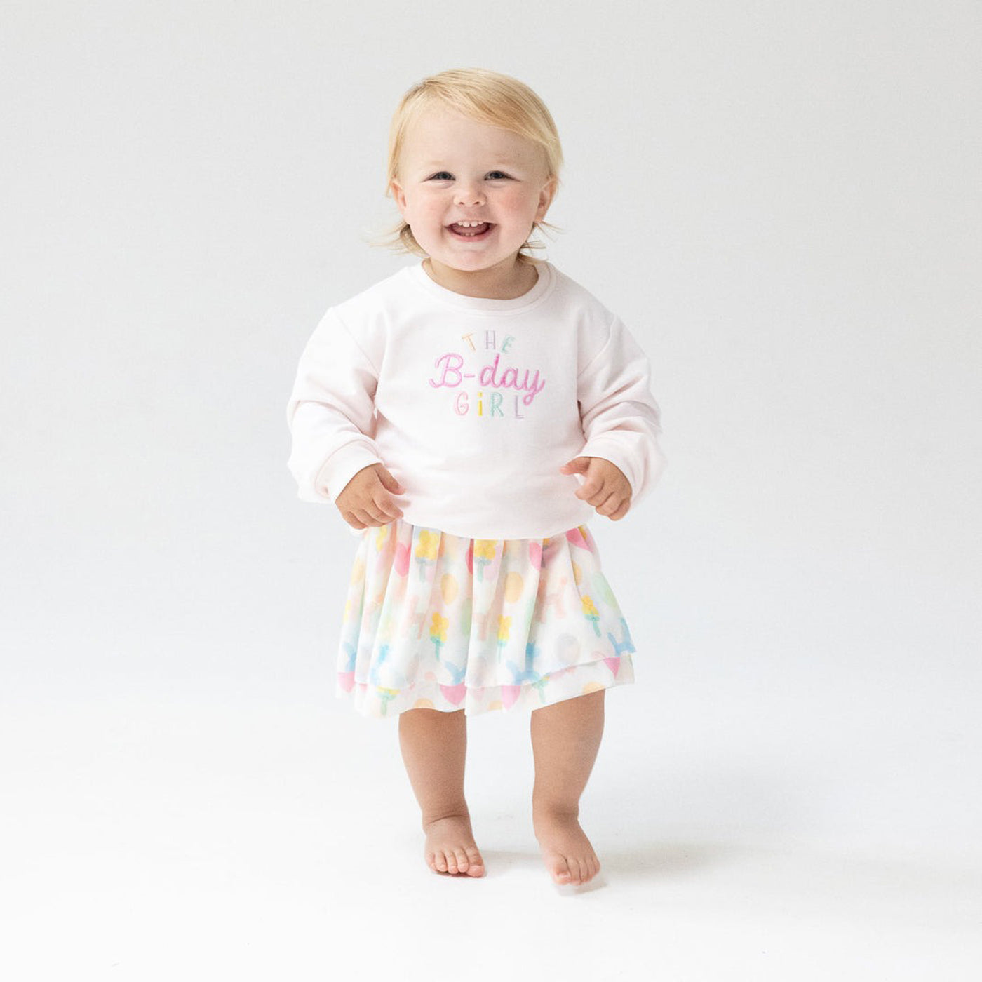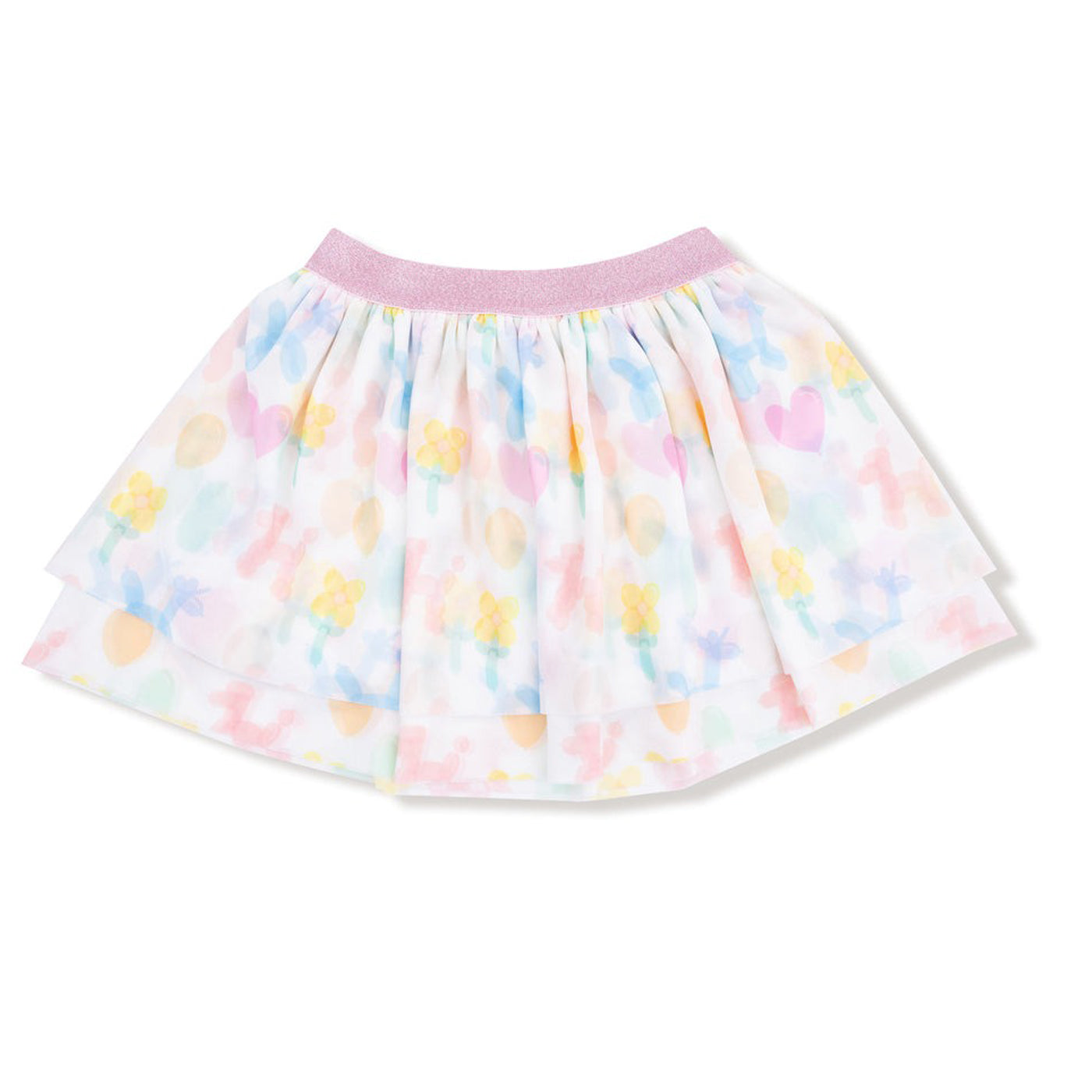 - Cue the confetti—it's tutu time! Our Tutu Skirt is ready to celebrate with layers of fluttery tulle, a sparkly pink waistband, and a hidden surprise: a soft bamboo underskirt printed with the cutest birthday balloon animals. Whether it’s her big day or she’s just here for the cake, this playful skirt brings the party wherever she goes.