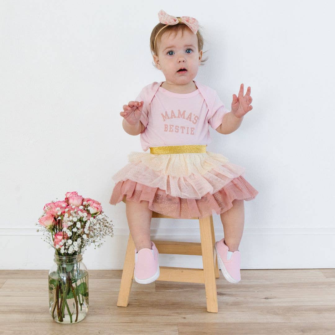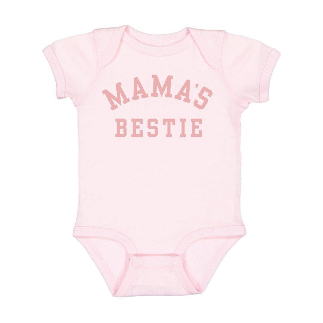 The Mama's Bestie Short Sleeve Bodysuit is a fun and cute bodysuit for babies celebrating Mother's Day or for showing love to Mom all year round!