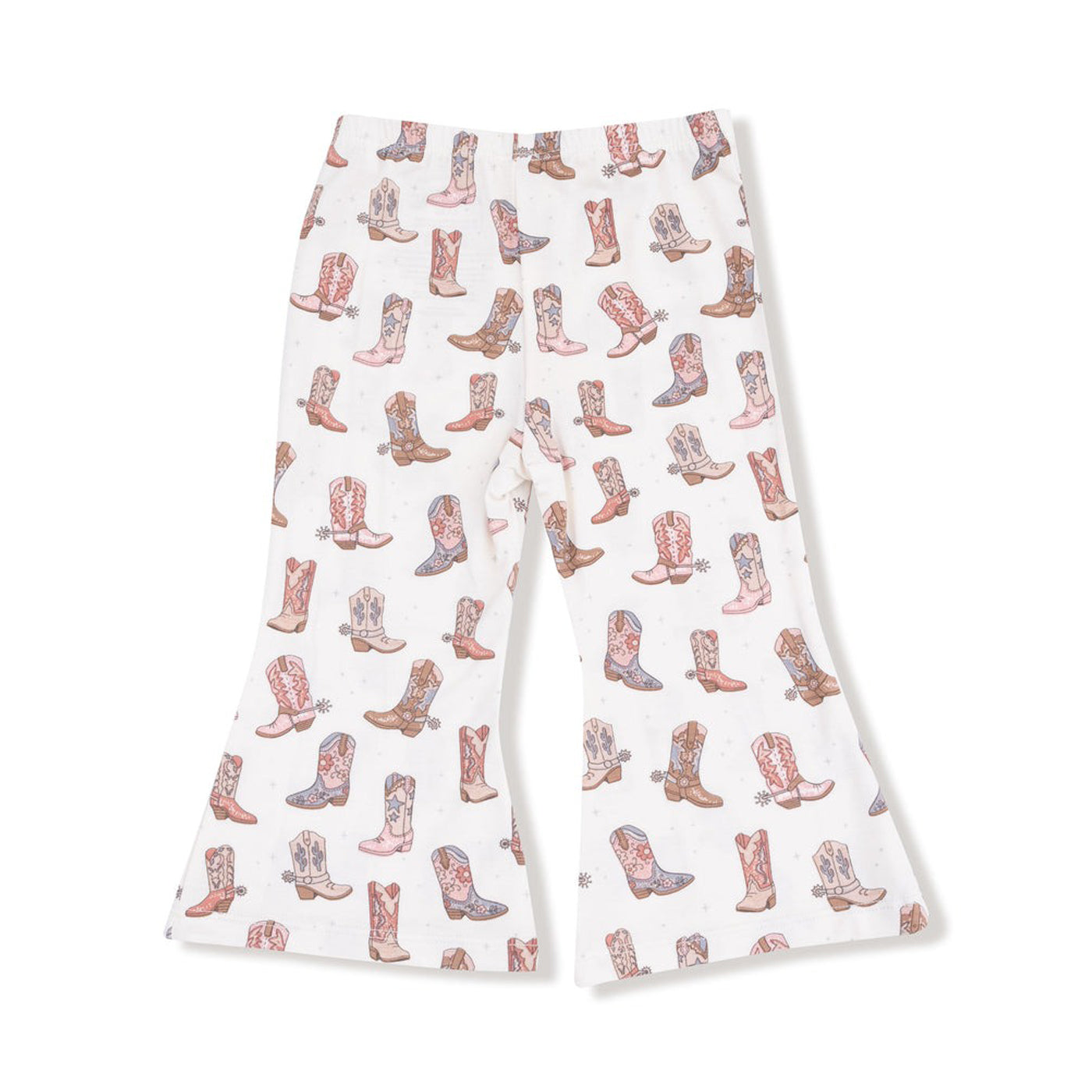 Get ready for adorable adventures in our Oversized Sweatshirt and Baby Bell Set! The soft French Terry sweatshirt pairs perfectly with viscose from bamboo Baby Bell bottoms, featuring a fun screenprint of cowboy boots and a nod to your little one’s wild, wonderful future as a tiny cowgirl. This set is made for cuddles, playtime, and all the sweet moments in between!