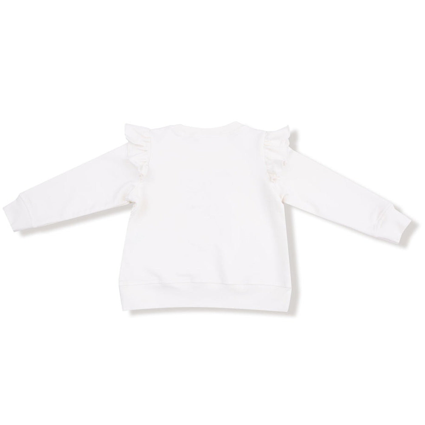 Get your little one all dressed up in holiday cheer! Our Ruffle Sweatshirt is made from soft, cozy organic French Terry and features sweet ruffles on the shoulders plus a festive candy cane bow applique with “Holly Jolly” stitched beneath. It’s the perfect mix of merry and magical for sleigh rides, cookie parties, and twinkly light strolls!