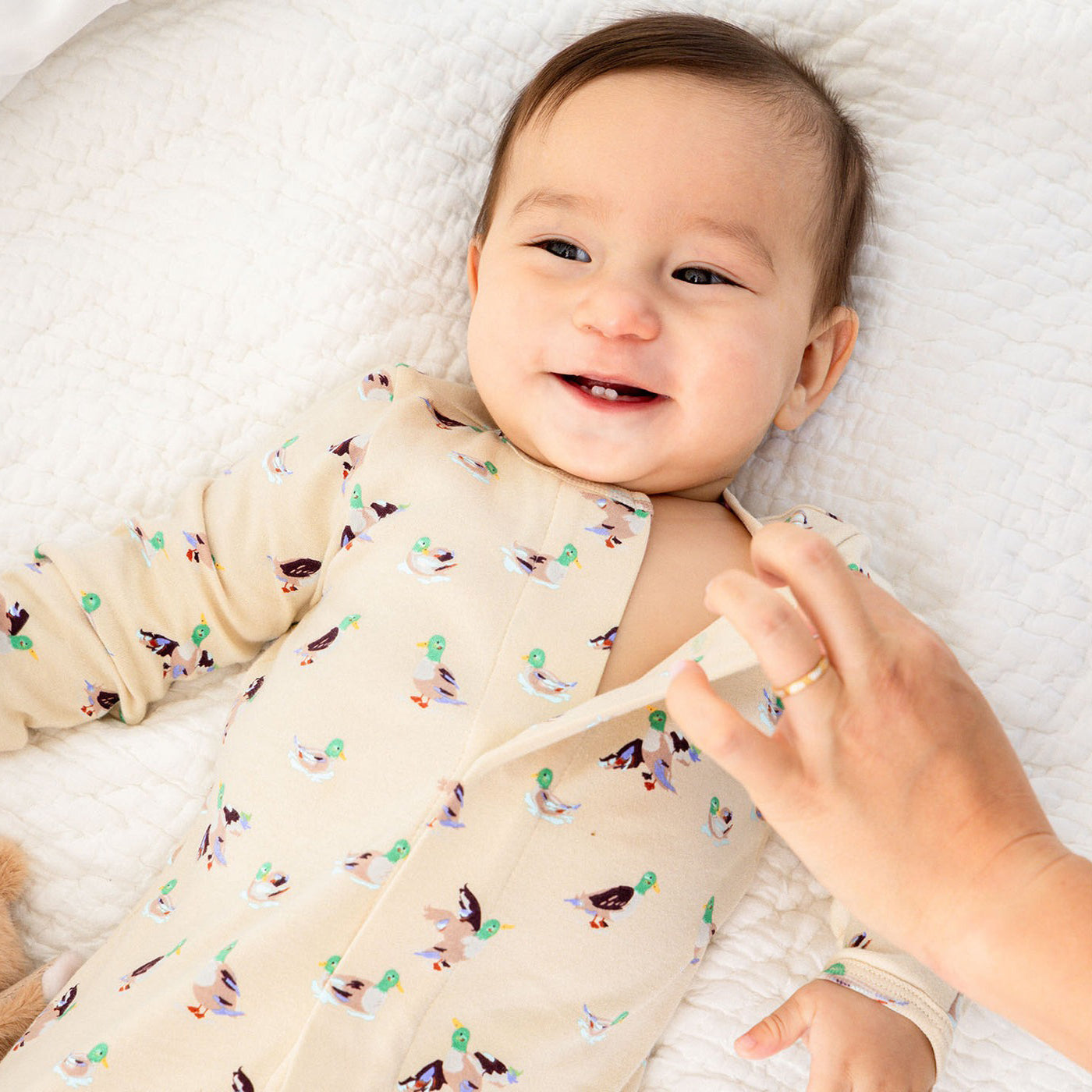 Our organic cotton Magnetic Footie, designed with magnetic closures, is a quick and quiet lifesaver for all-day and middle-of-the-night diaper changes—that's up to 12 times a day (!). Made from GOTS certified organic cotton, this sleeper is so soft, breathable, and gentle on sensitive skin.