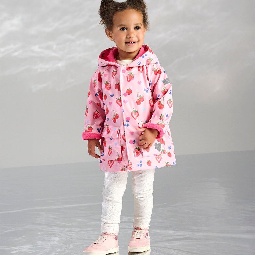 - Hood: Attached hood keeps little heads dry