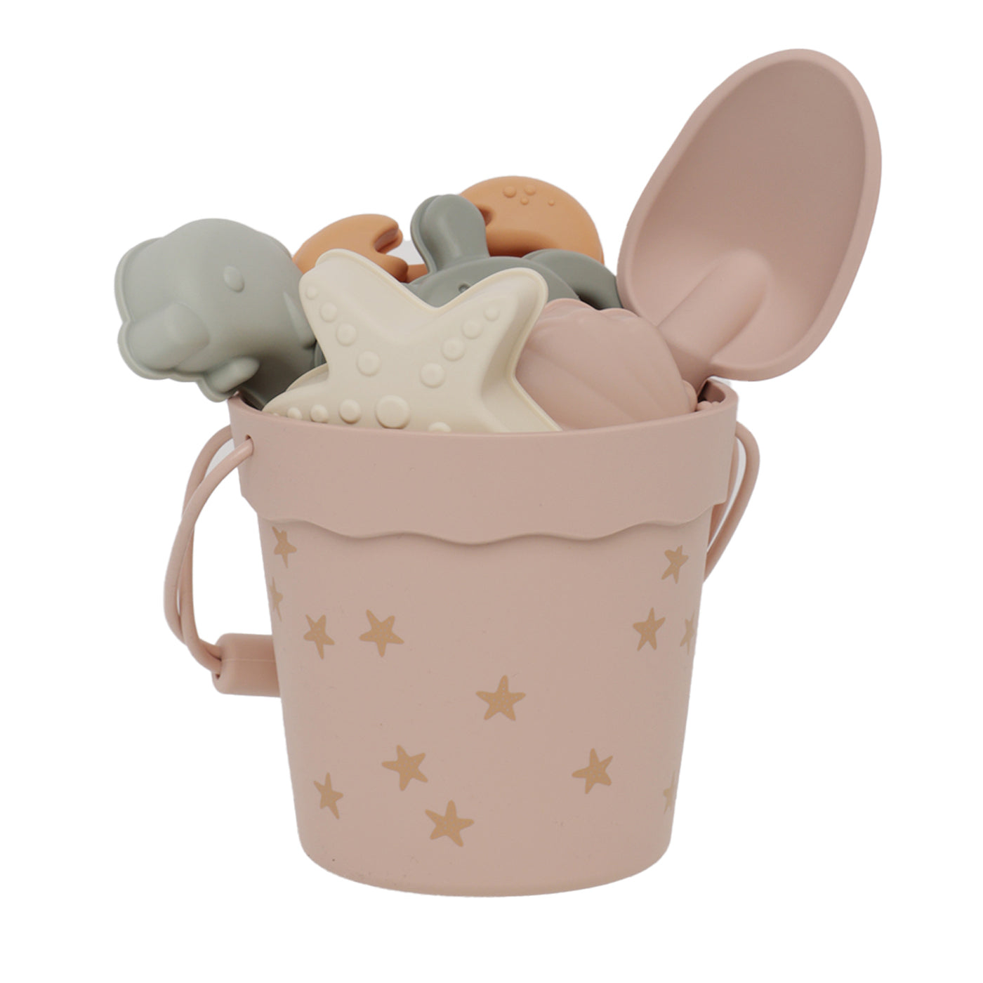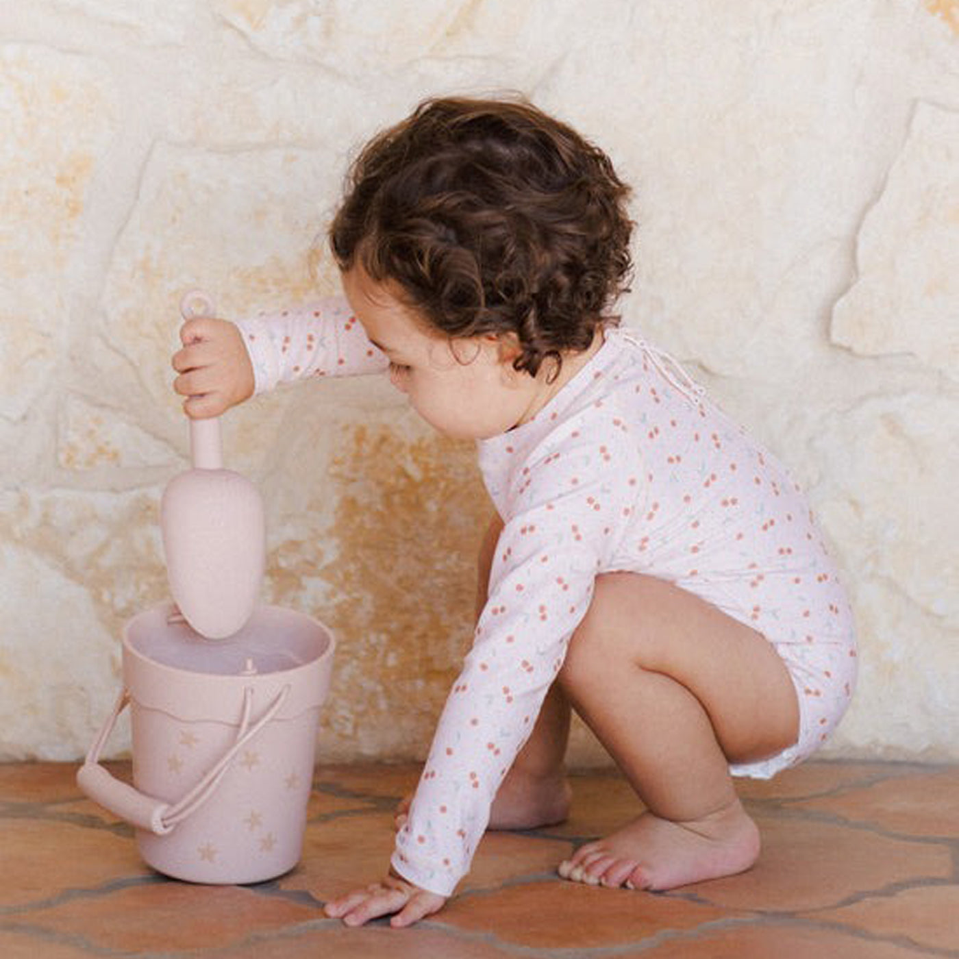 - Featuring our 'pink' colored shovel + bucket with our 'starfish' design.