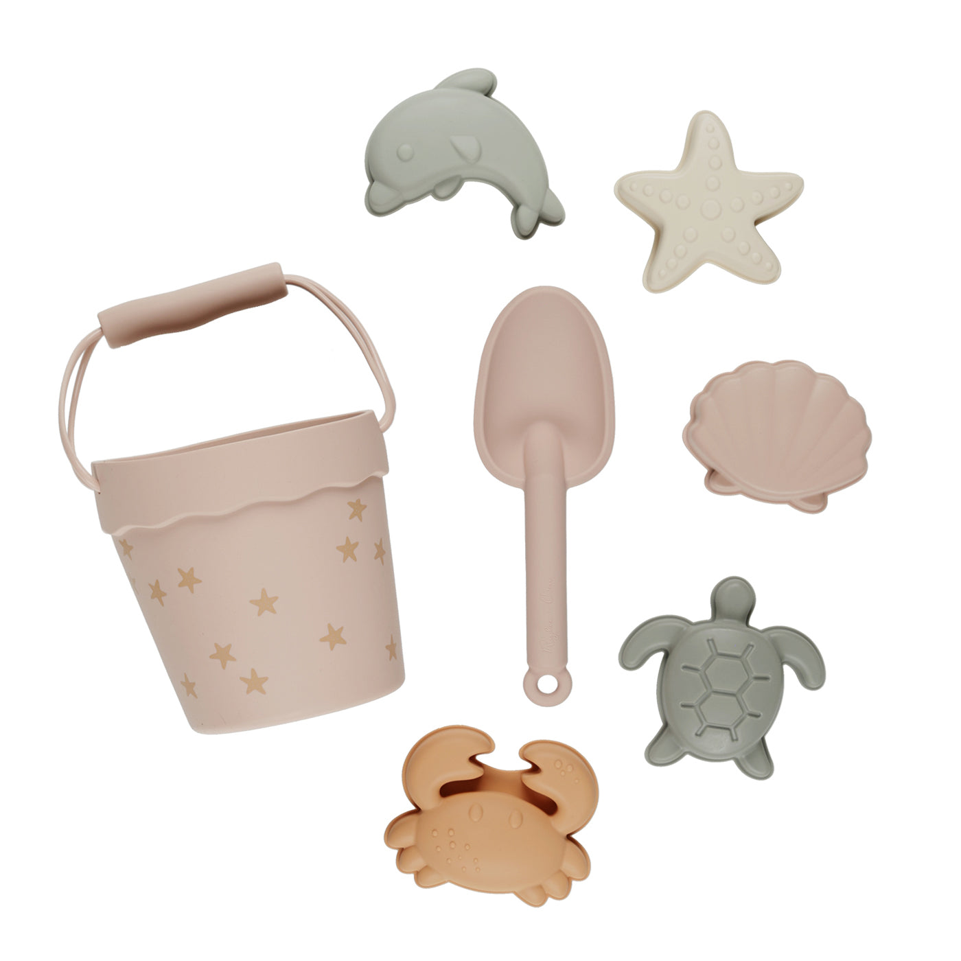 - Toy shapes include: crab, turtle, starfish, dolphin, seashell.