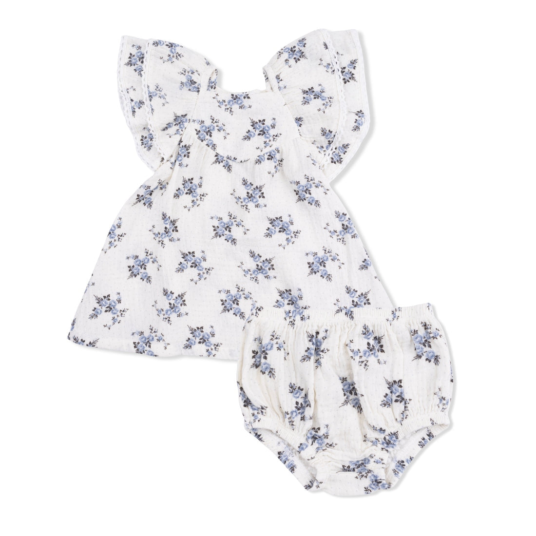 Our V-Neck Dress and Bloomer, made from silky-soft Organic Cotton Muslin, brings comfort and charm together in one perfect set. Featuring big ruffle sleeves with delicate crochet trim, elastic at the neck and legs for a cozy fit, and a snap closure on the back for easy dressing, this outfit is perfect for playdates, photos, or everyday adventures.