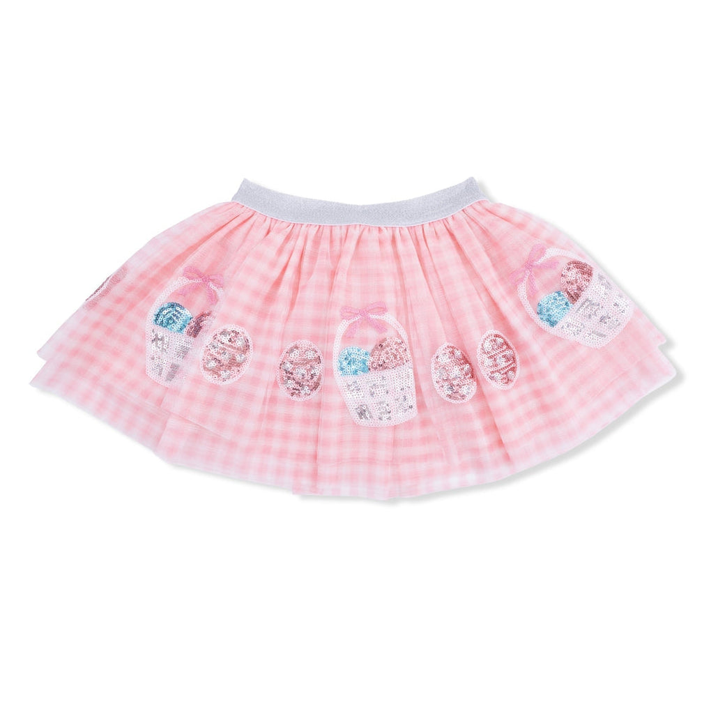 Celebrate spring in style with our Easter Tutu Skirt with Bike Shorts! The soft, flouncy tulle skirt twirls beautifully, while ultra-soft Viscose from Bamboo bike shorts keep little ones comfy and covered. A sparkling waistband and festive sequin Easter egg and Easter basket appliques make this set perfect for egg hunts, photos, and sunny spring days.