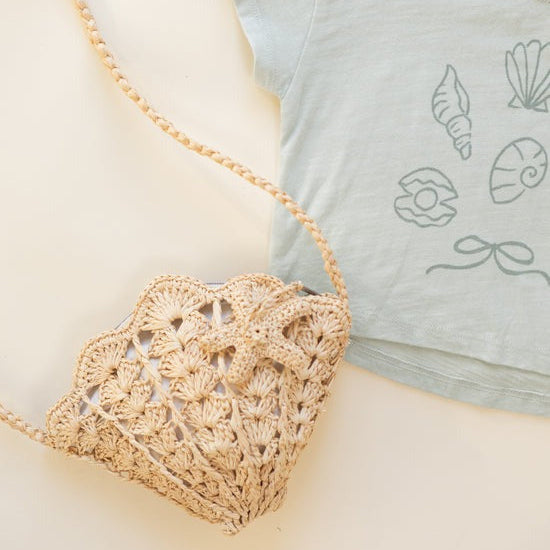 Our Shell Purse is the perfect summer accessory to complete any look. This straw purse features a braided handle and starfish zipper pull.
