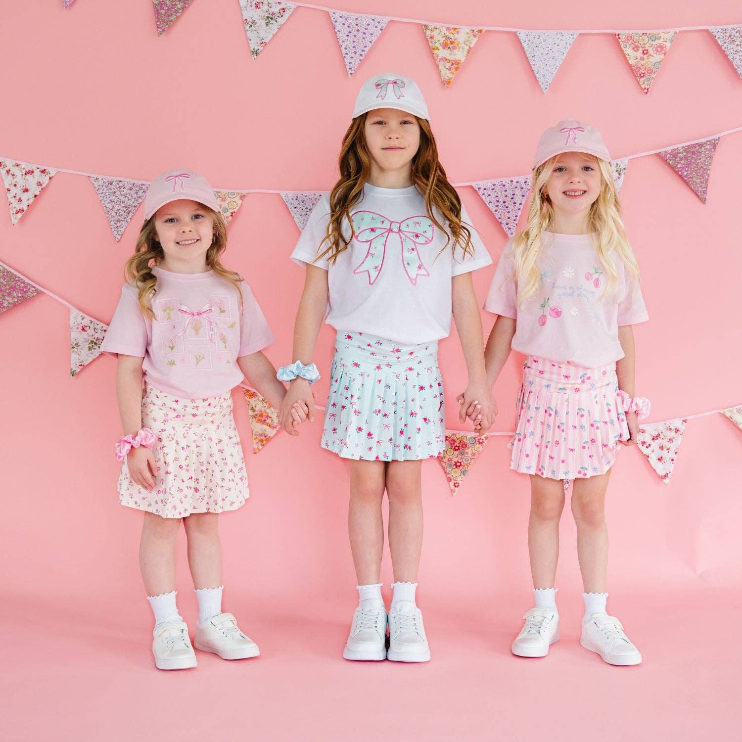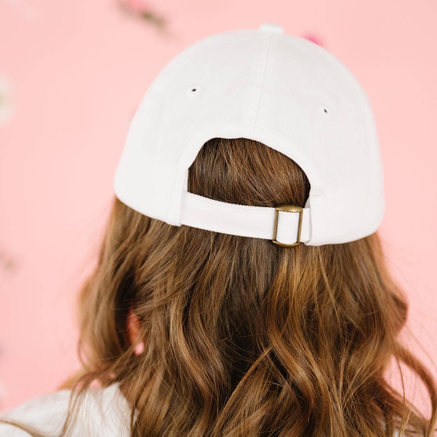 Keep her cool and comfortable on every sunny adventure with this sweet white baseball hat, featuring a sky-blue bow patch blooming with tiny pink rosebuds and bows.