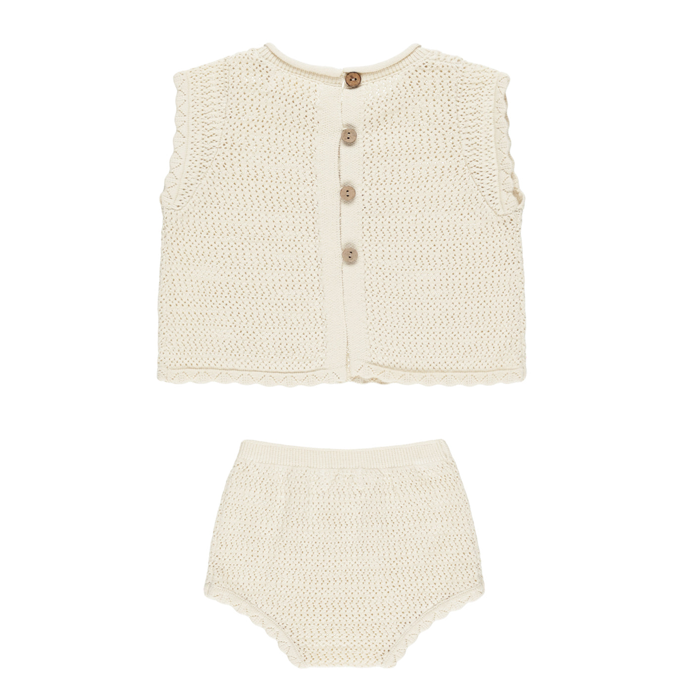 Our Scallop Crochet Baby Set is a must-have for your little gals! With sweet scallop details and a button back closure.