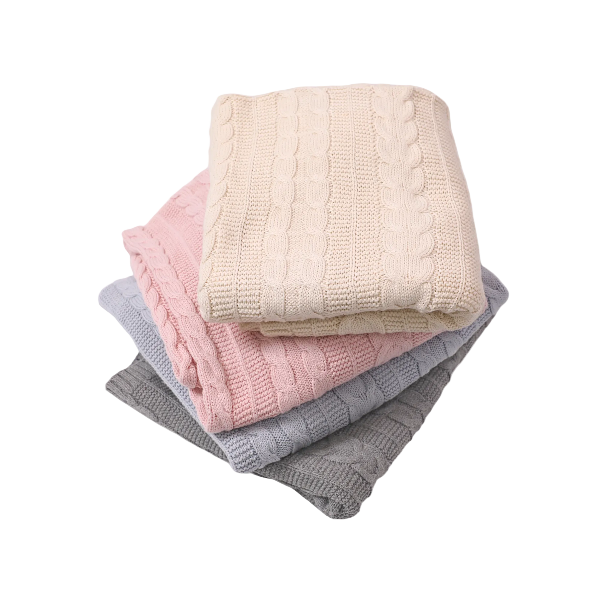 • 100% organic cotton, sweater knit, ultra-soft - cable knit Baby blanket.