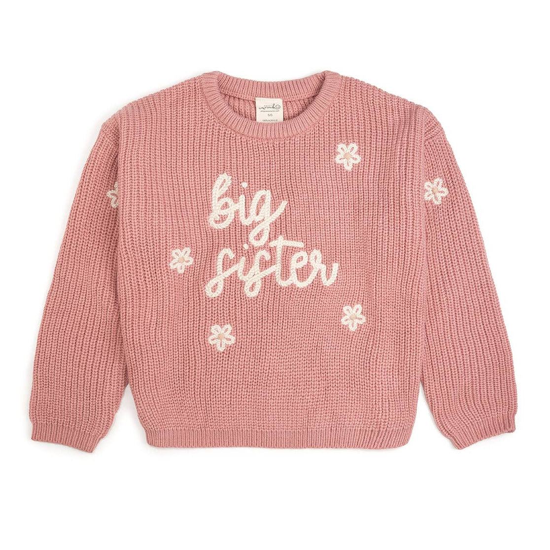 The Big Sister Knit Sweater is a fun and cute sweater for any girl who's a big sister or about to become a big sister!