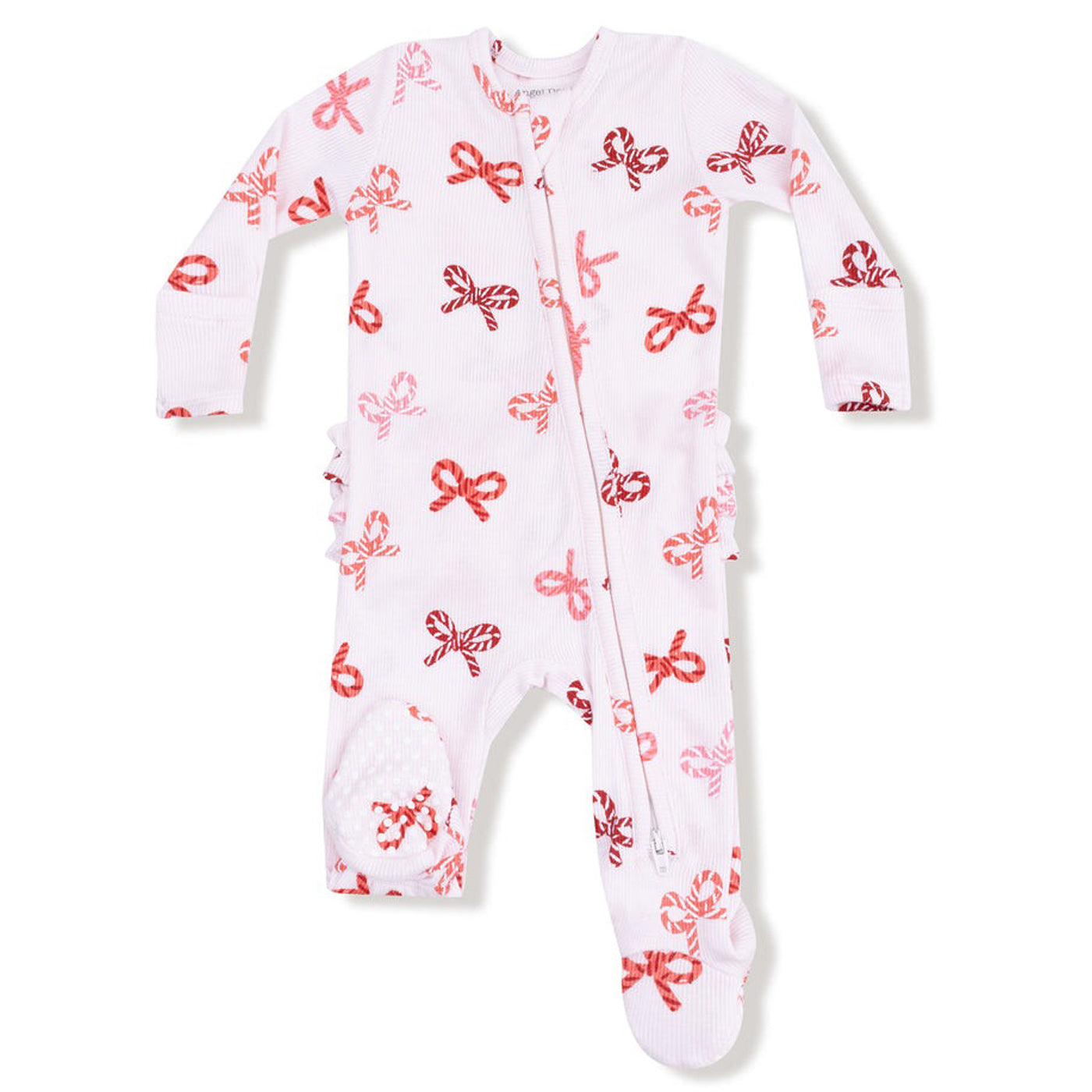 Candy Cane Bows - 2 Way Zipper Ruffle Back Footie