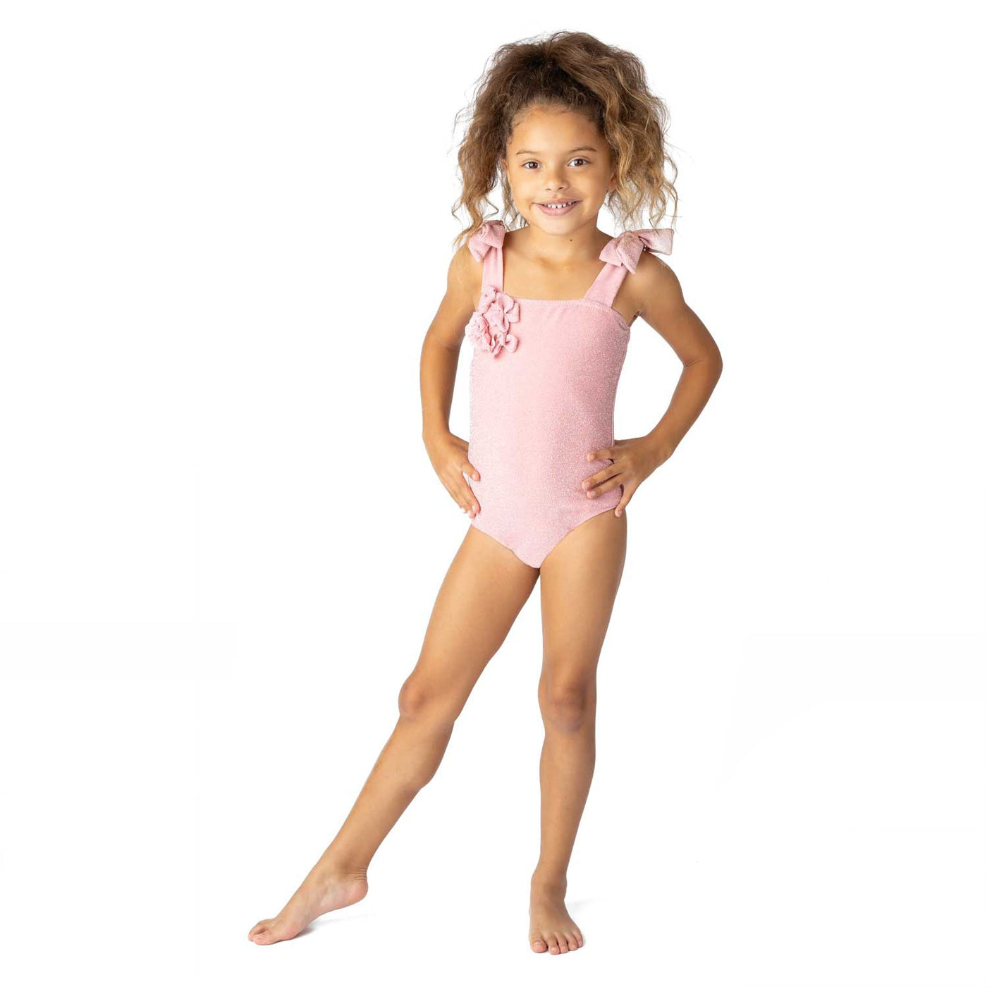Add a touch of sparkle to her swimwear collection with the Coral Girls Shimmer Flower One Piece Swimsuit. Featuring beautiful shimmer detailing and a delicate flower design, this swimsuit is perfect for making a stylish statement by the pool or at the beach. The swimsuit is fully lined for comfort and features flat zig-zag stitching for durability and a sleek finish. With full cut coverage, it ensures a secure fit thats both comfortable and confident, ideal for swimming, playing, or lounging. Made from a blend of 80% Nylon, 9% Metallic, and 11% Spandex, this swimsuit offers just the right amount of stretch and flexibility. The UPF50+ sun protective fabrics provide excellent protection from harmful UV rays, allowing her to stay safe while enjoying the sunshine.