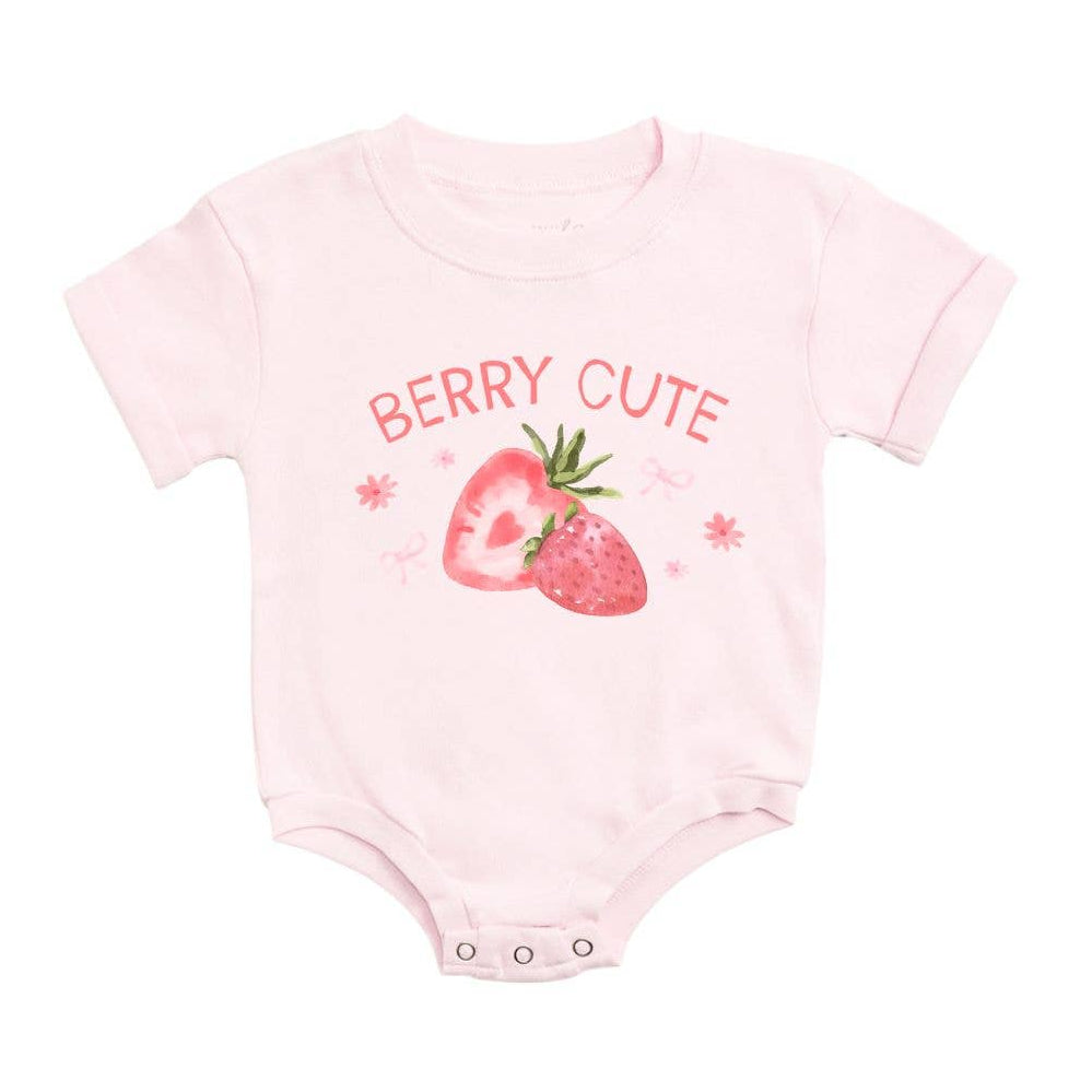 This sweet little romper is bursting with strawberry charm, perfect for your tiny bundle of sweetness.