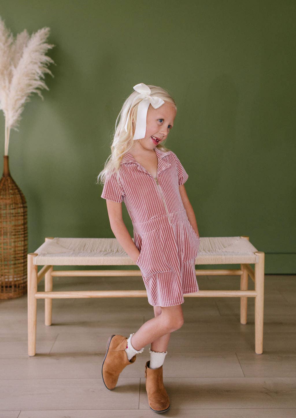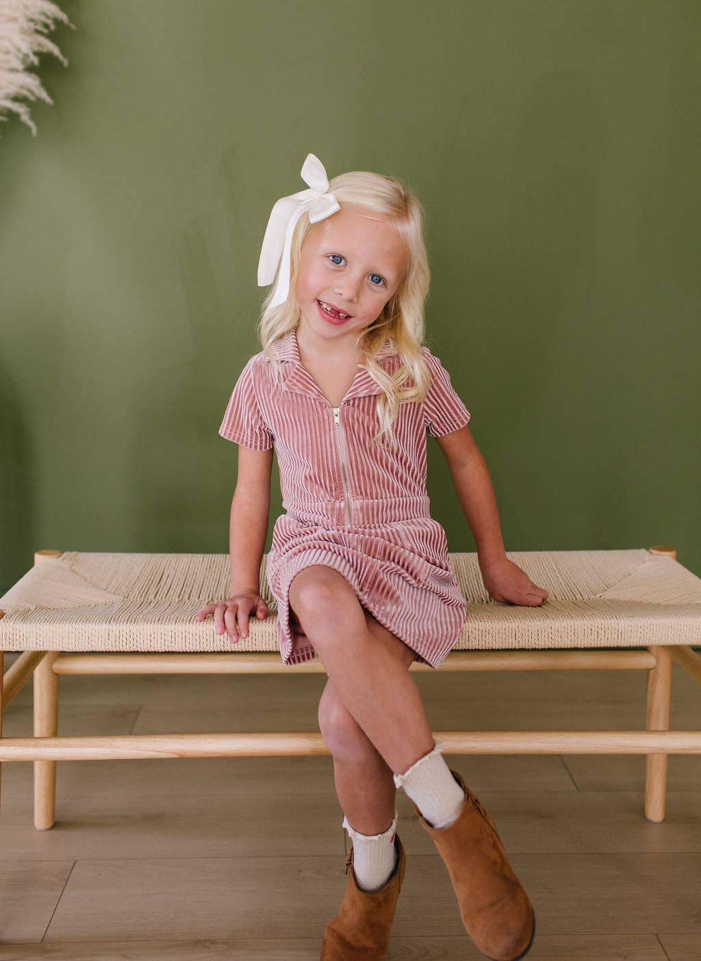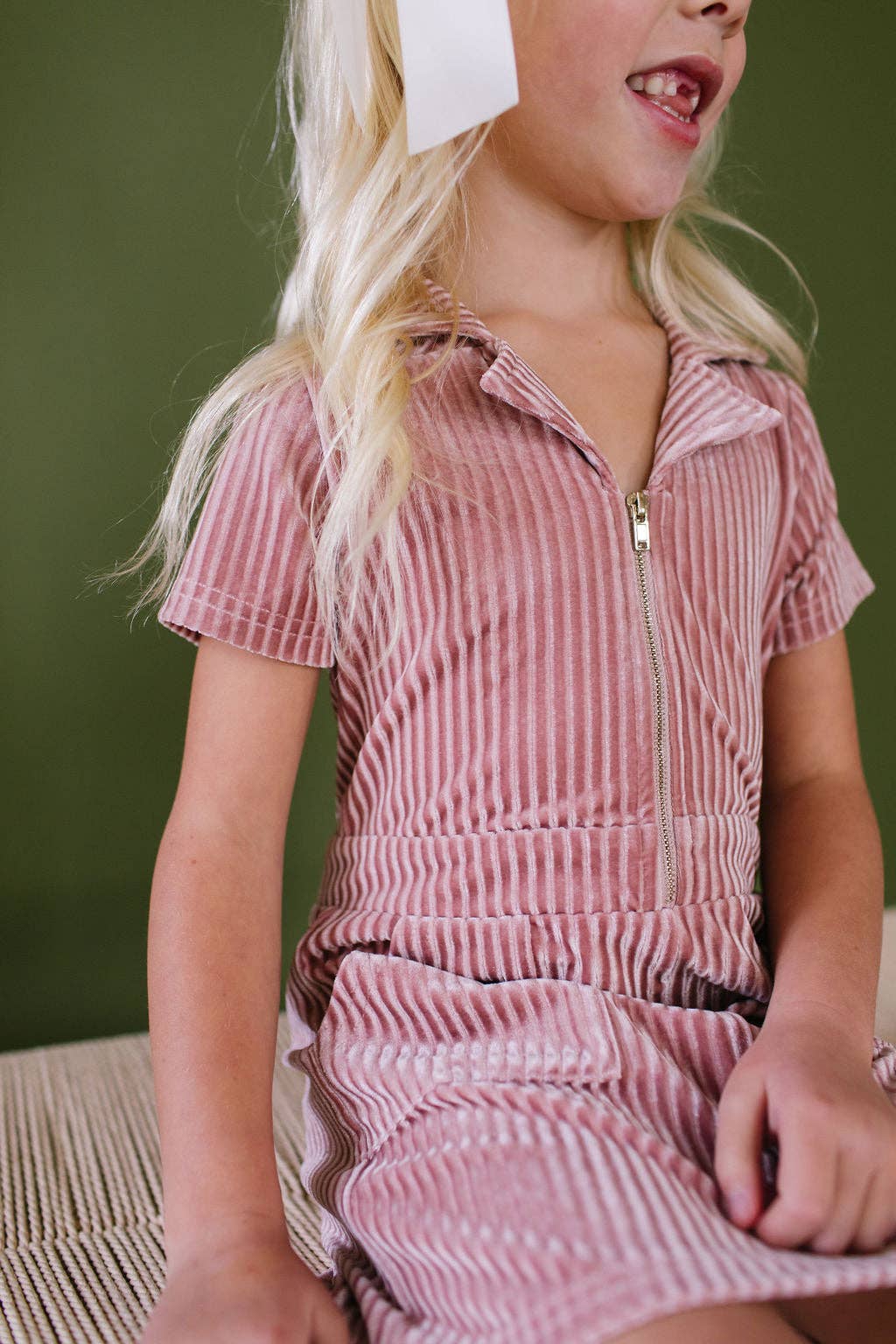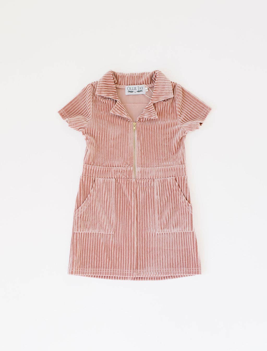 Look effortlessly stylish in this soft corduroy dress! This beautiful blush color is perfect for fall. Its zippered front and square pockets provide convenience, while the short sleeves and collar add a touch of sophistication. Wash cold with like colors Hang or lay flat to dry for longer wear