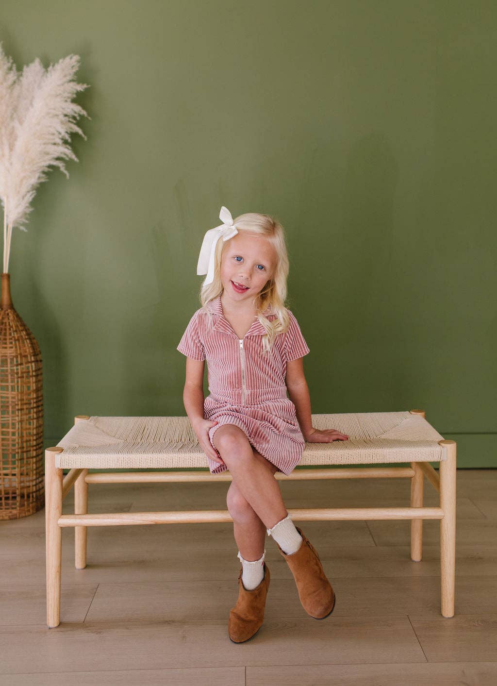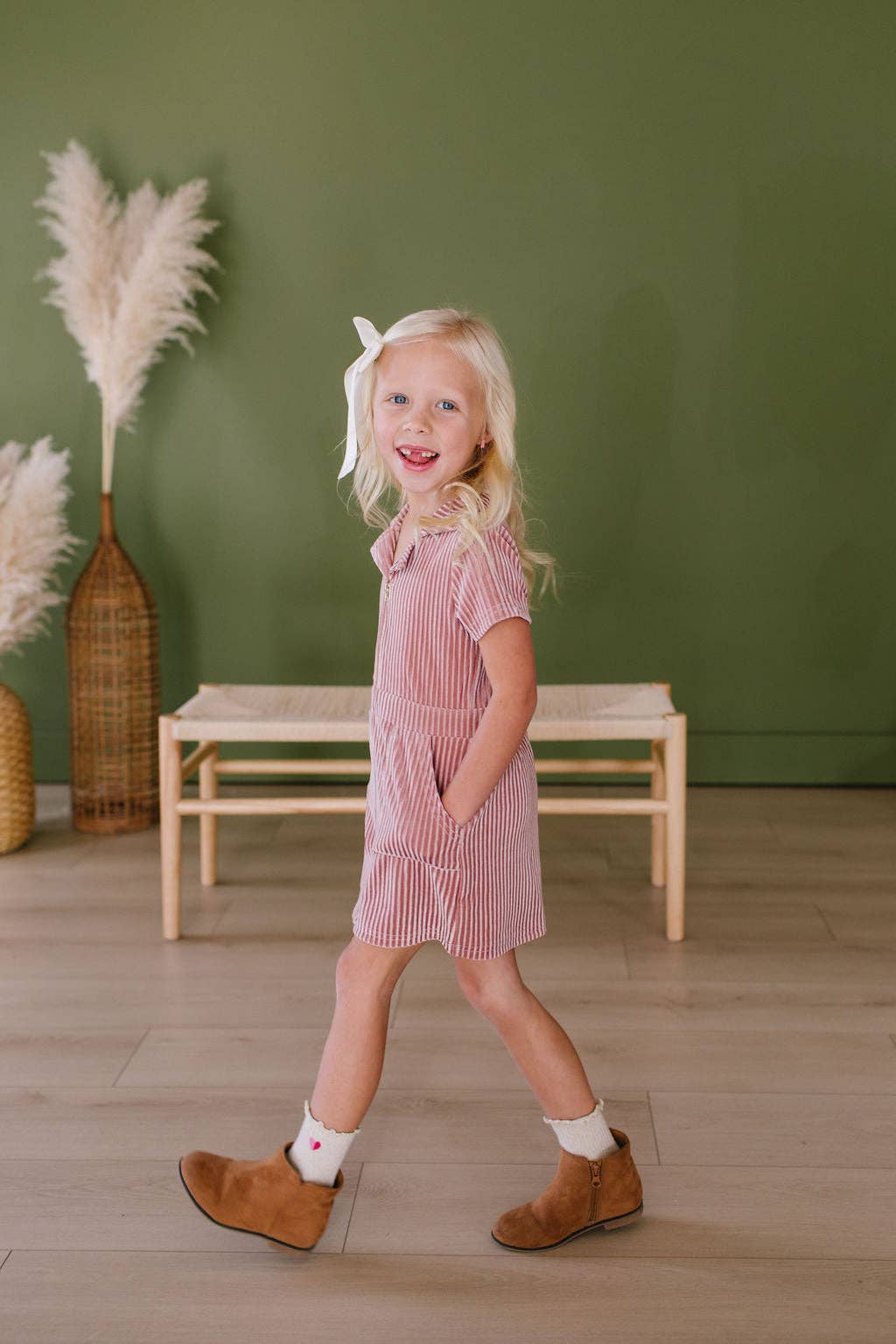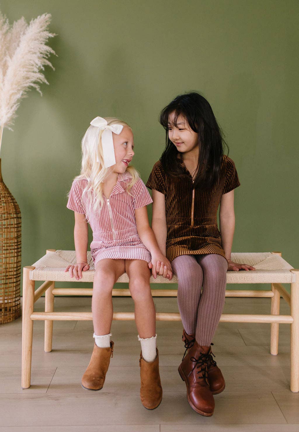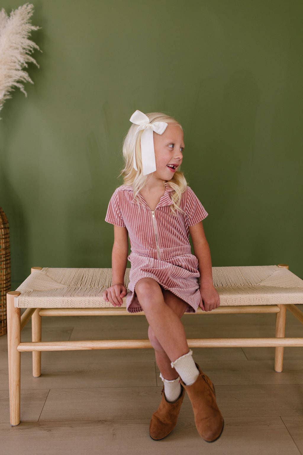 Look effortlessly stylish in this soft corduroy dress! This beautiful blush color is perfect for fall. Its zippered front and square pockets provide convenience, while the short sleeves and collar add a touch of sophistication. Wash cold with like colors Hang or lay flat to dry for longer wear