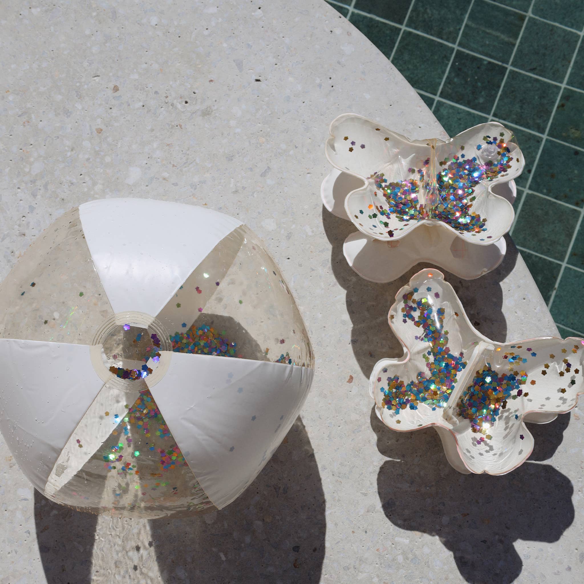 Internal multi-coloured glitter. Special valve designed to prevent glitter from escaping inflatable. Includes repair patch in case of punctures. Made from durable, non-toxic phthalate-free PVC. Our floats and inflatables carry important safety warnings that may not be shown in all photography.