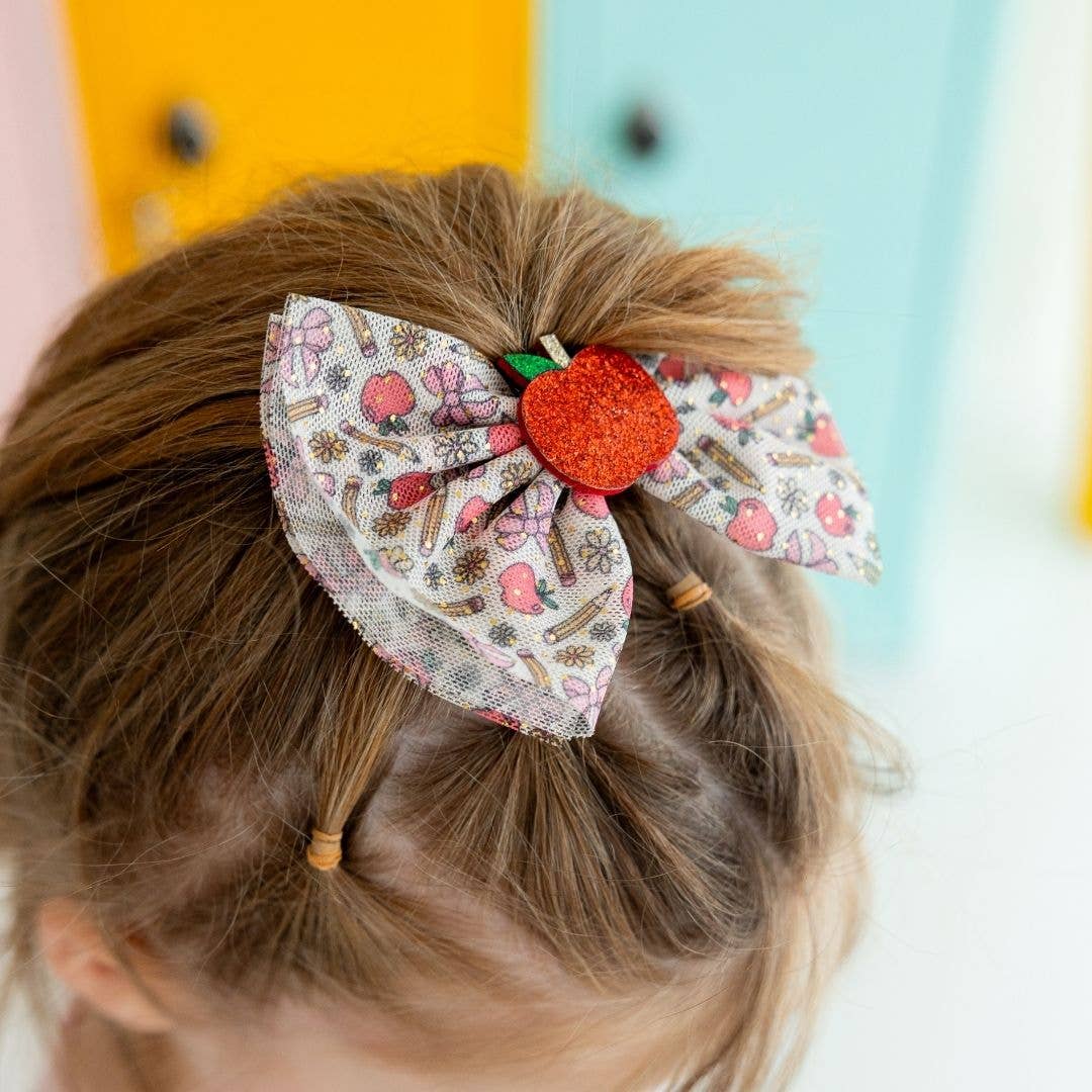 Every little girl needs the perfect hair clip to complete her look! The Back To School Cutie Tulle Bow Clip is the perfect hair accessory for celebrating back to school.