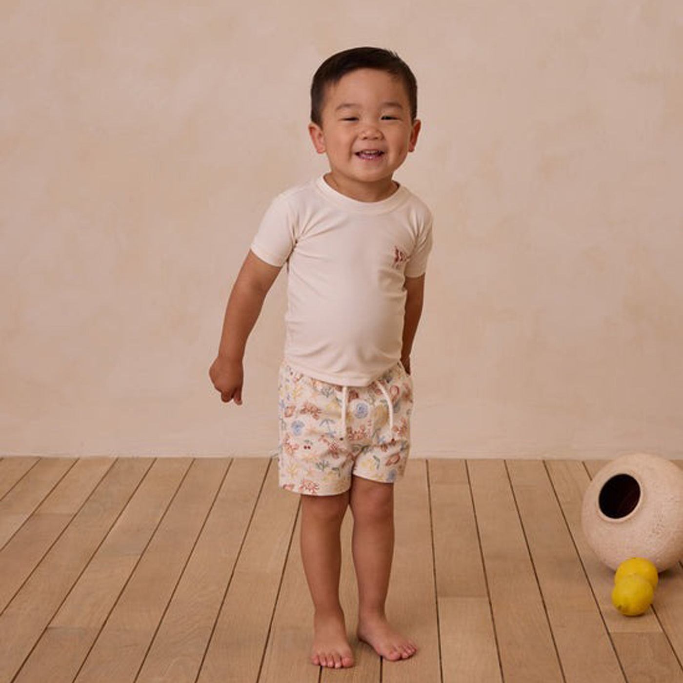These soft boardshorts are perfect for pool and beach days! Featuring an elastic waistband with adjustable drawstring and pockets.
