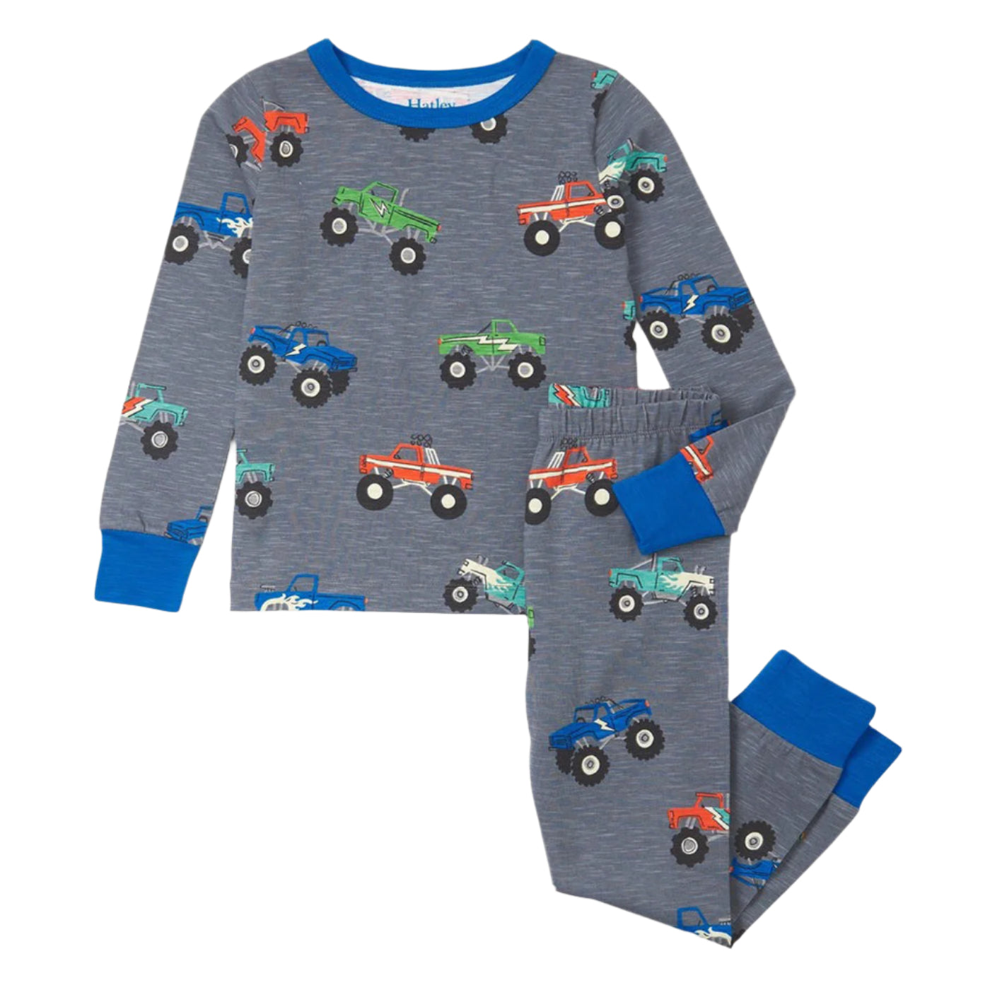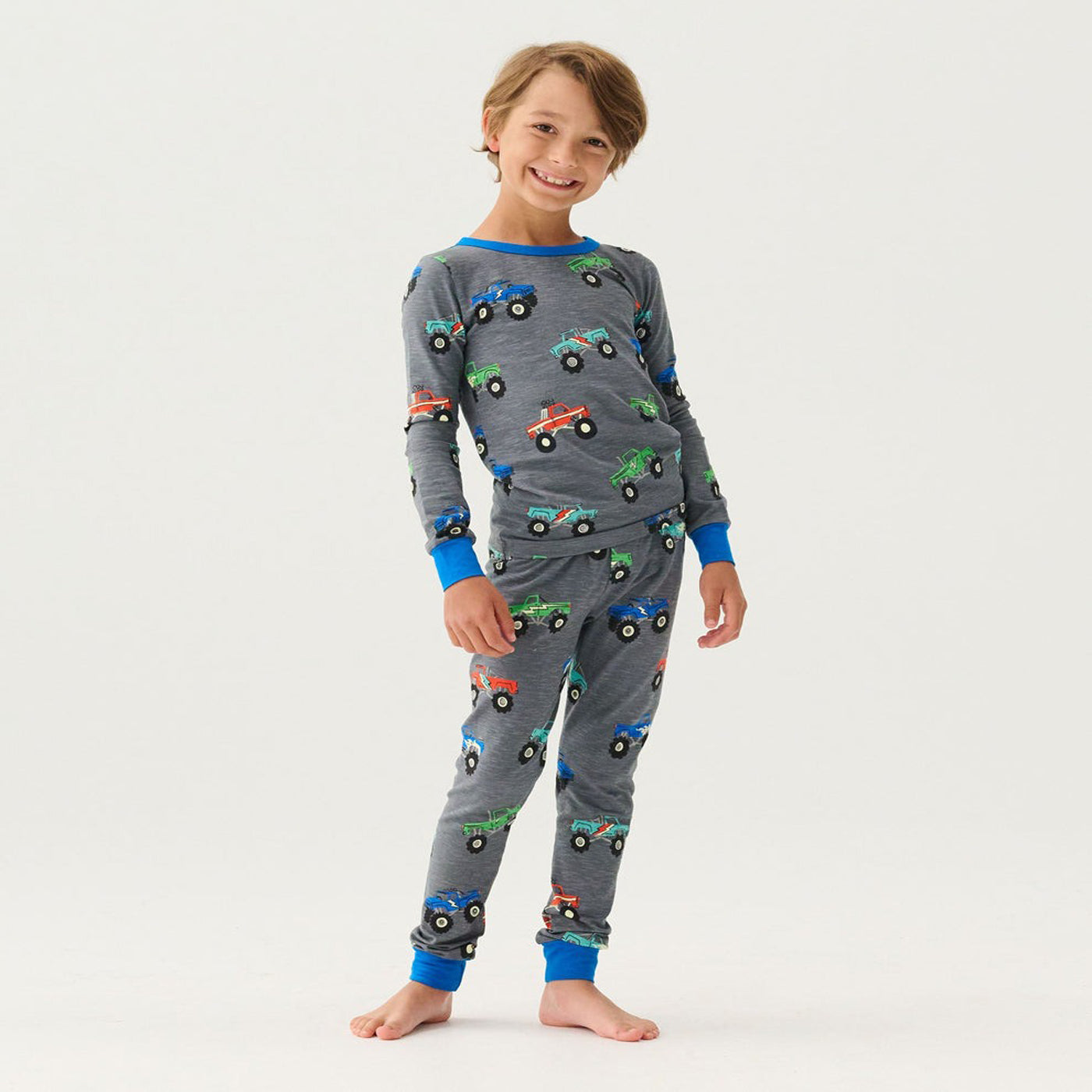 Get ready for a monster-sized sleep with the Boys Monster Trucks Pajama Set! Made from organically grown cotton, this comfy set features a cool monster truck pattern. Perfect for adventurous dreamers.