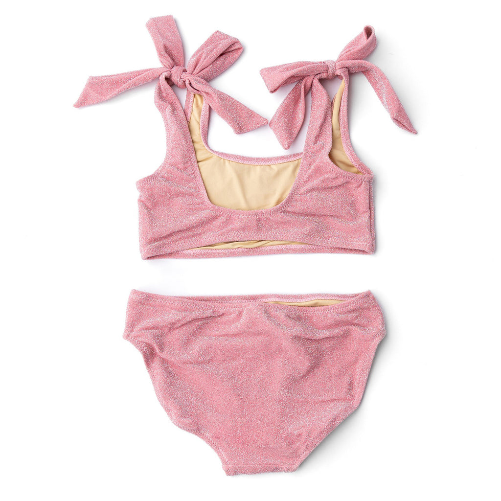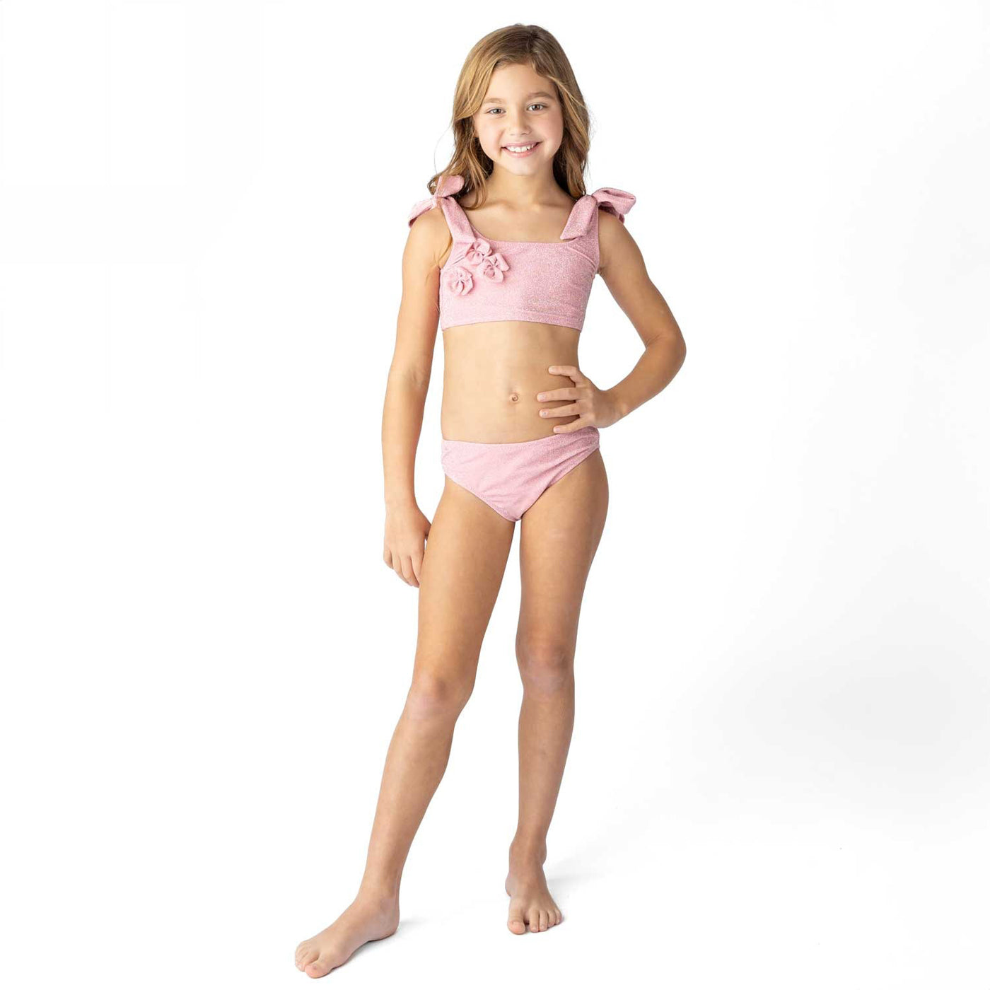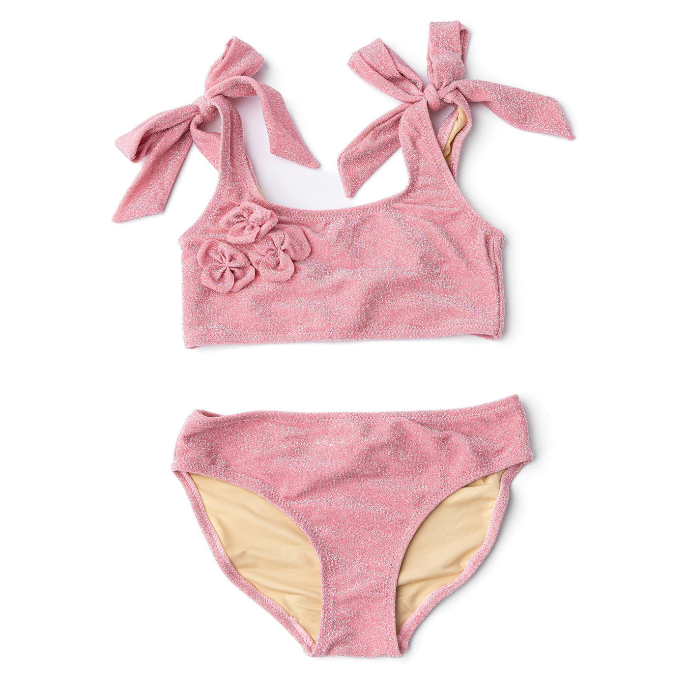 Make a statement with the Coral Girls Shimmer Flower Two Piece Swimsuit, designed to add sparkle and style to her swim collection. Featuring gorgeous shimmer detailing and a delicate flower design, this two-piece swimsuit shines under the sun, perfect for pool days and beach adventures. The set is fully lined for comfort and durability, with flat zig-zag stitching ensuring a smooth, long-lasting finish. Designed with full cut coverage, it provides a secure and comfortable fit for active girls who love to swim and play. Made from 80% Nylon, 9% Metallic, and 11% Spandex, it offers the perfect combination of flexibility and support. The UPF50+ sun protective fabrics provide excellent protection from harmful UV rays, keeping her safe while enjoying outdoor fun.