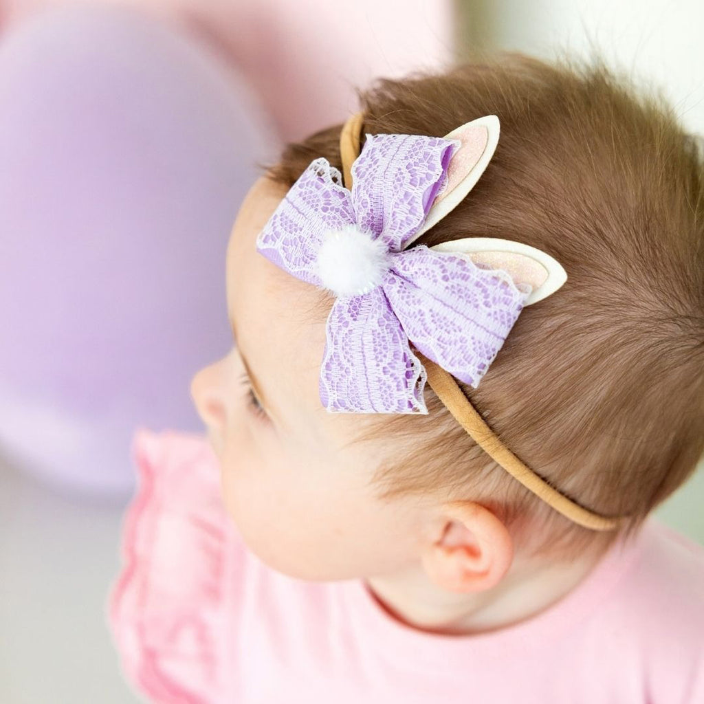 Every baby girl needs the perfect headband to complete her look! The Lavender Lace Easter Bunny Bow Baby Headband is the perfect hair accessory for celebrating Easter.