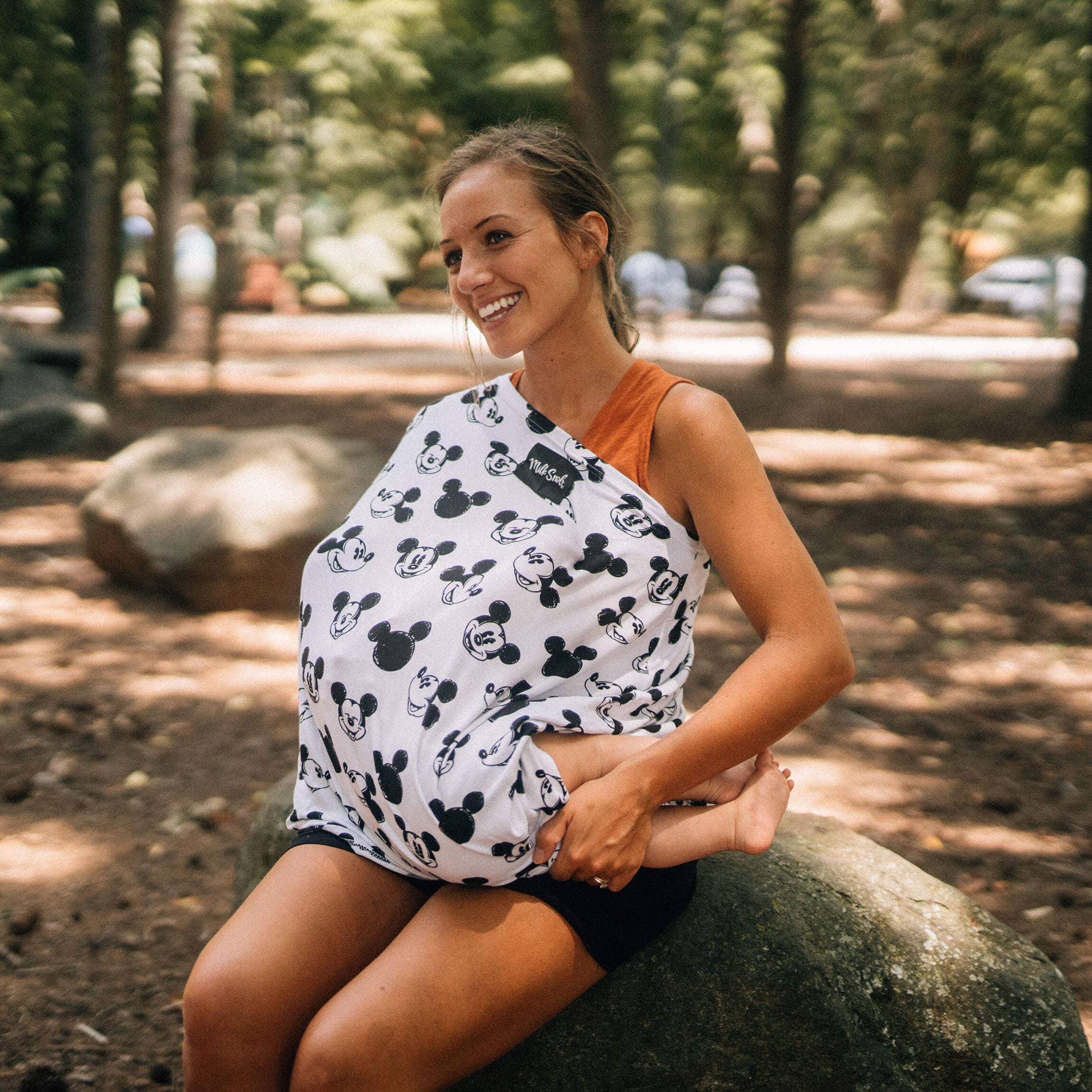 We are proud to have partnered with Disney Baby® to bring you this print! The original Milk Snob® Cover is a fitted infant car seat cover that can also be used as a cover for nursing, shopping carts, high chairs, infant swings and more. Milk Snob® Covers are handcrafted using premium rayon blend fabric. 4-way stretch provides a custom fit on any infant car seat True 360° coverage for extra comfort while nursing Provides shade, privacy, and protection against weather Designed and safety-tested in the U.S.A. Never use cover on car seat inside a vehicle