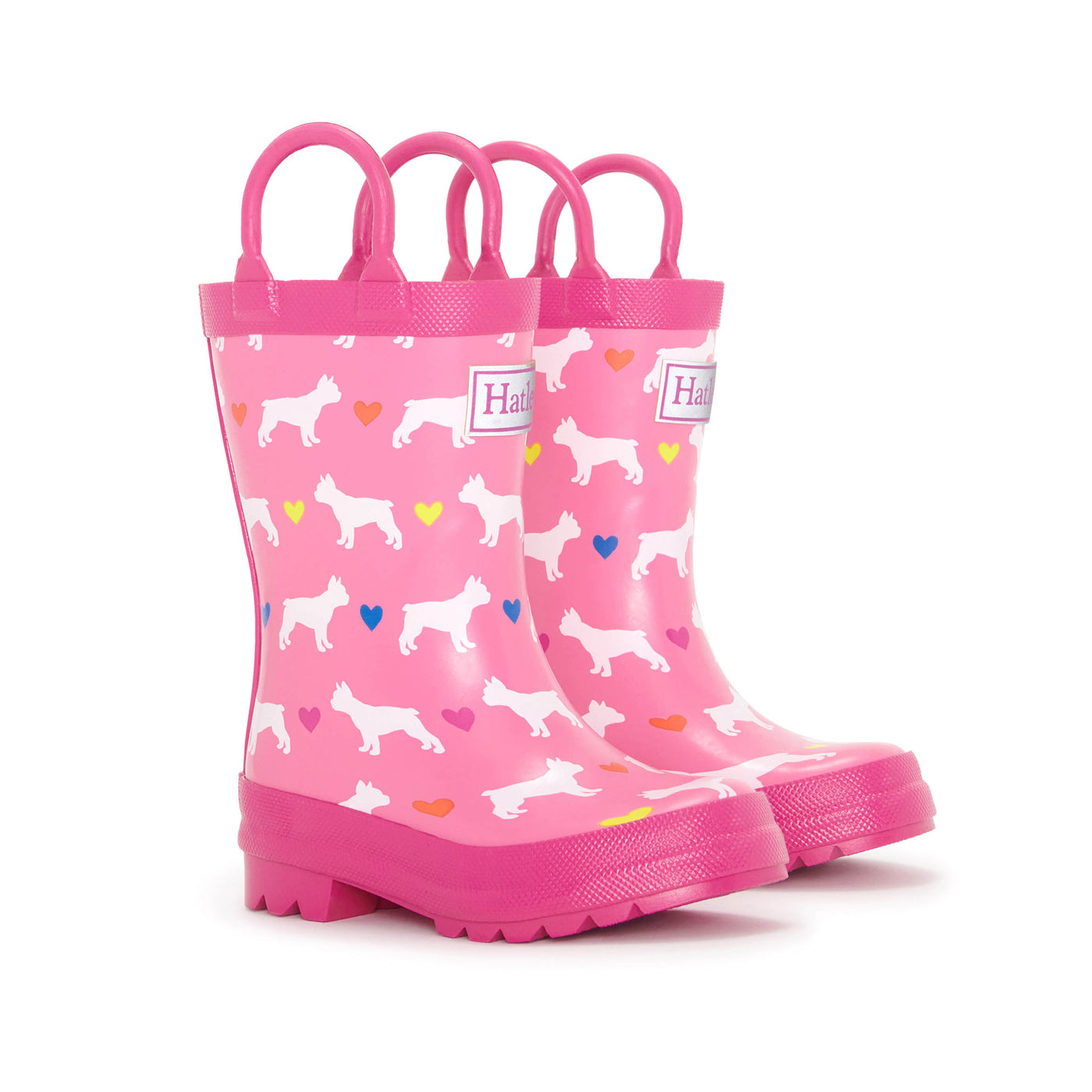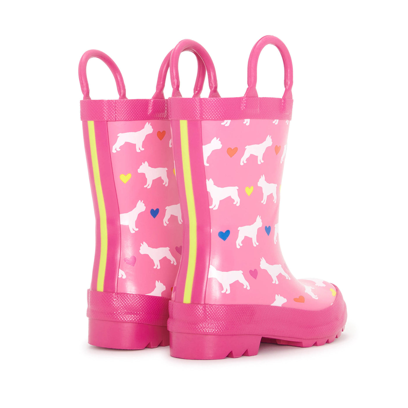 Add puppy love to her rainy-day outfit with the Toddler Girls French Bulldogs Rain Boots! These adorable rubber boots feature a cute French Bulldog design, perfect for keeping little feet dry and stylish.